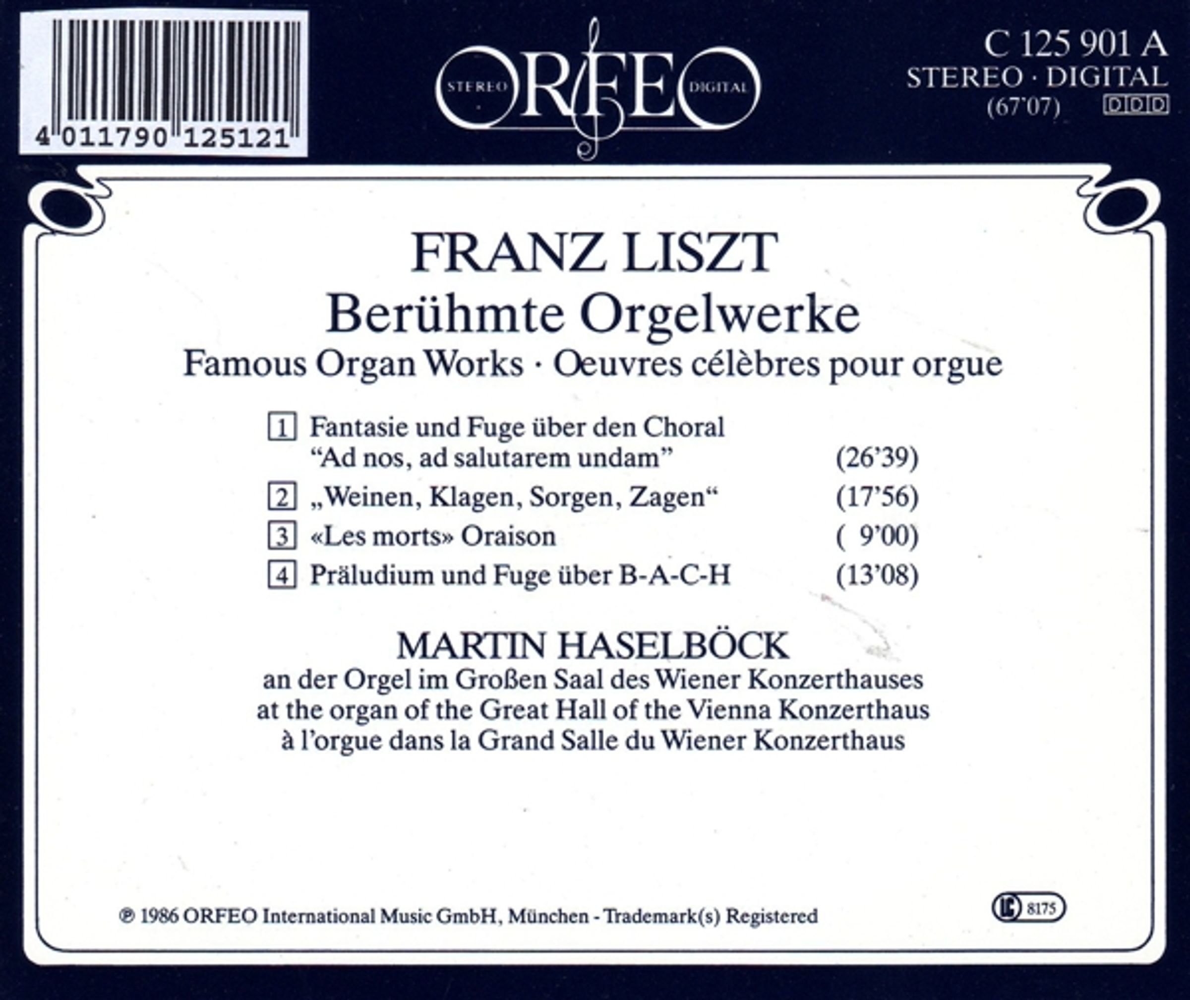 Ad nos, ad salutarem undam; Weinen, Klagen, Sorgen, Zagen; Les morts-Oraison; Präludium & Fuge über B-A-C-H