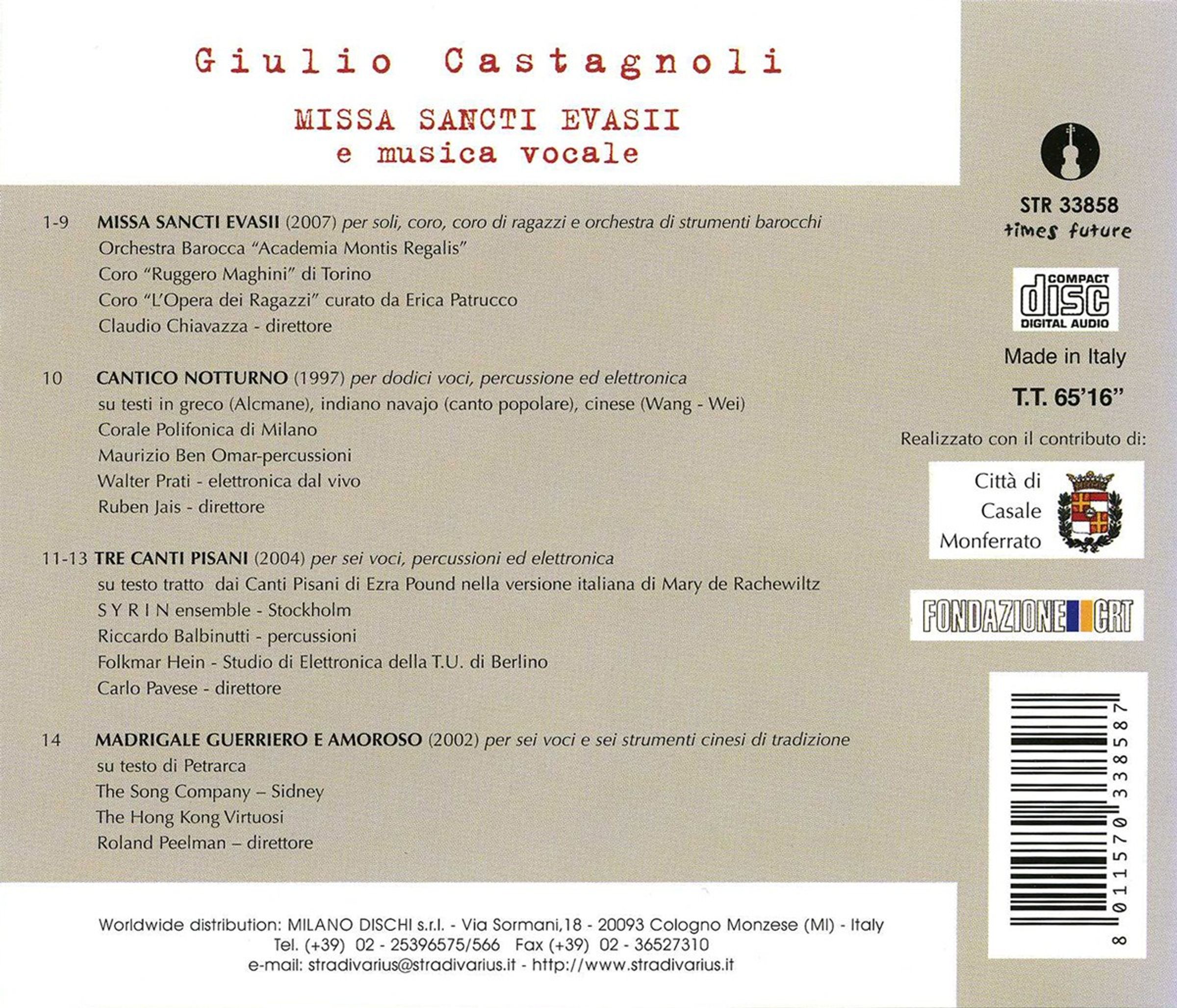 Giulio Castagnoli: Missa Sancti Evasii auf CD