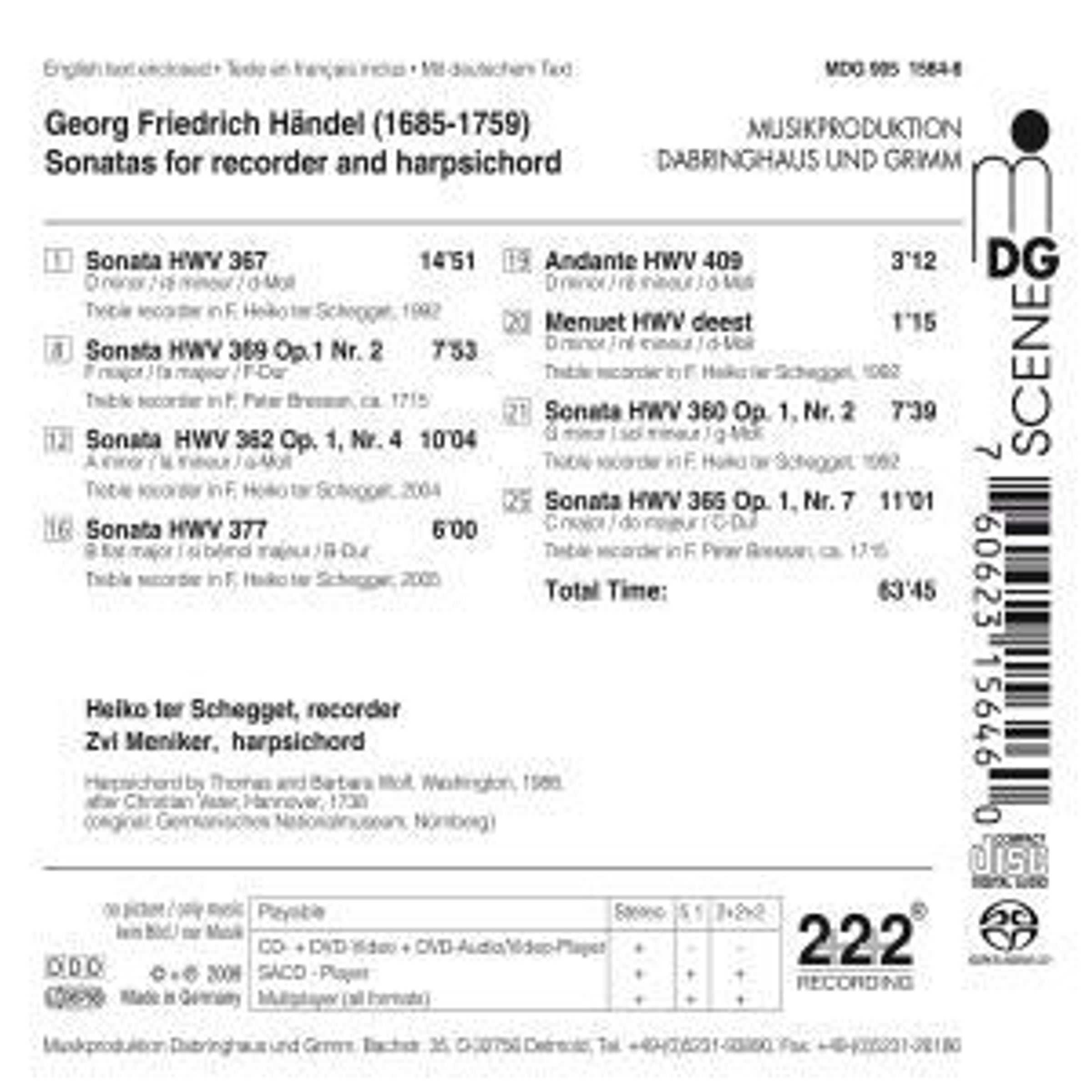 Georg Friedrich Händel: Sonaten für Blockflöte & Cembalo auf Super Audio CD