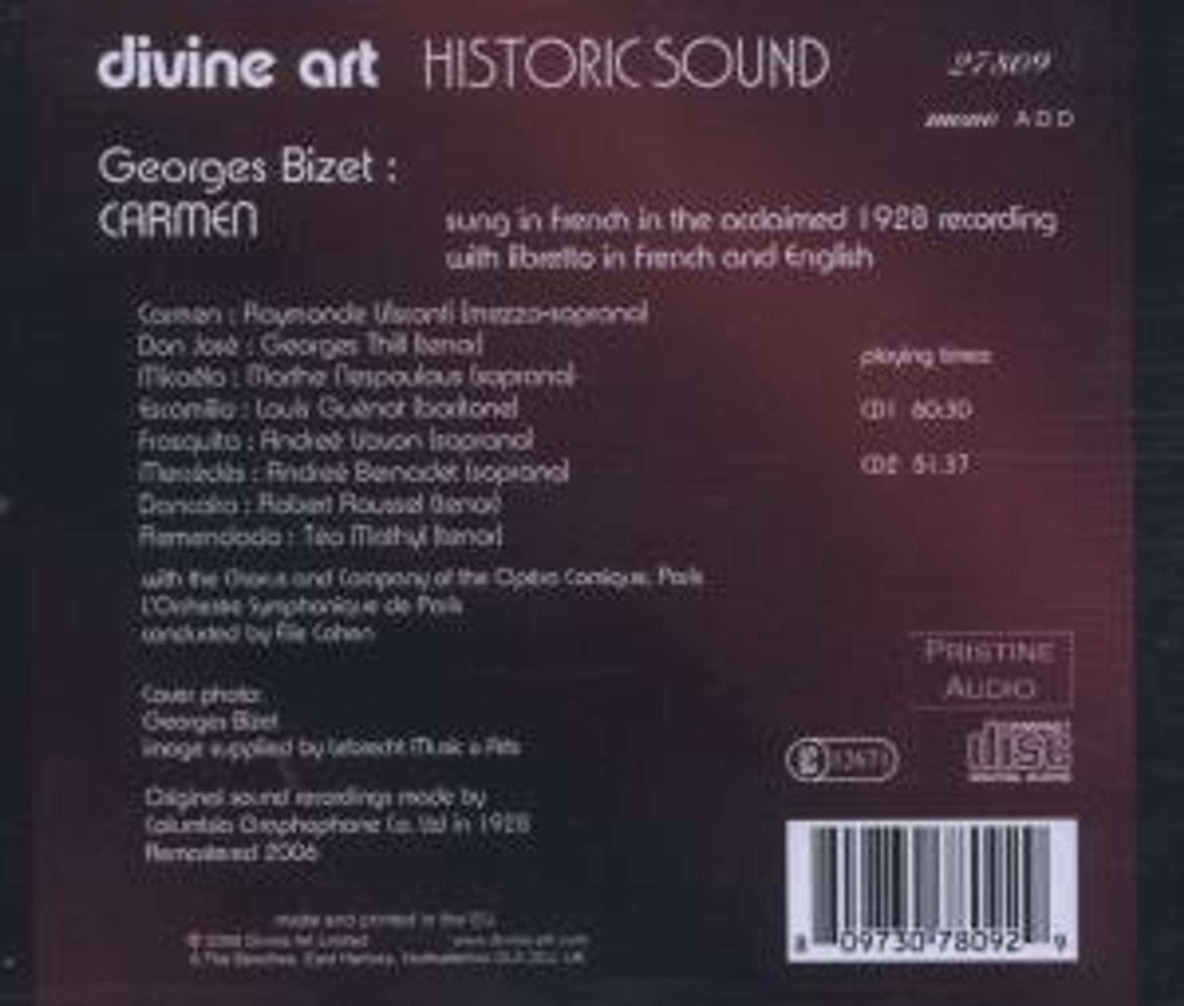 Diese klassische Aufnahme der beliebtesten Oper der Welt, die um 1928 entstand, wurde bisher nur sehr begrenzt auf LP oder CD veröffentlicht. Obwohl sie als vom Pariser Symphonieorchester stammend beworben und etikettiert wird, handelt es sich bei der Besetzung tatsächlich um die Opéra-Comique.