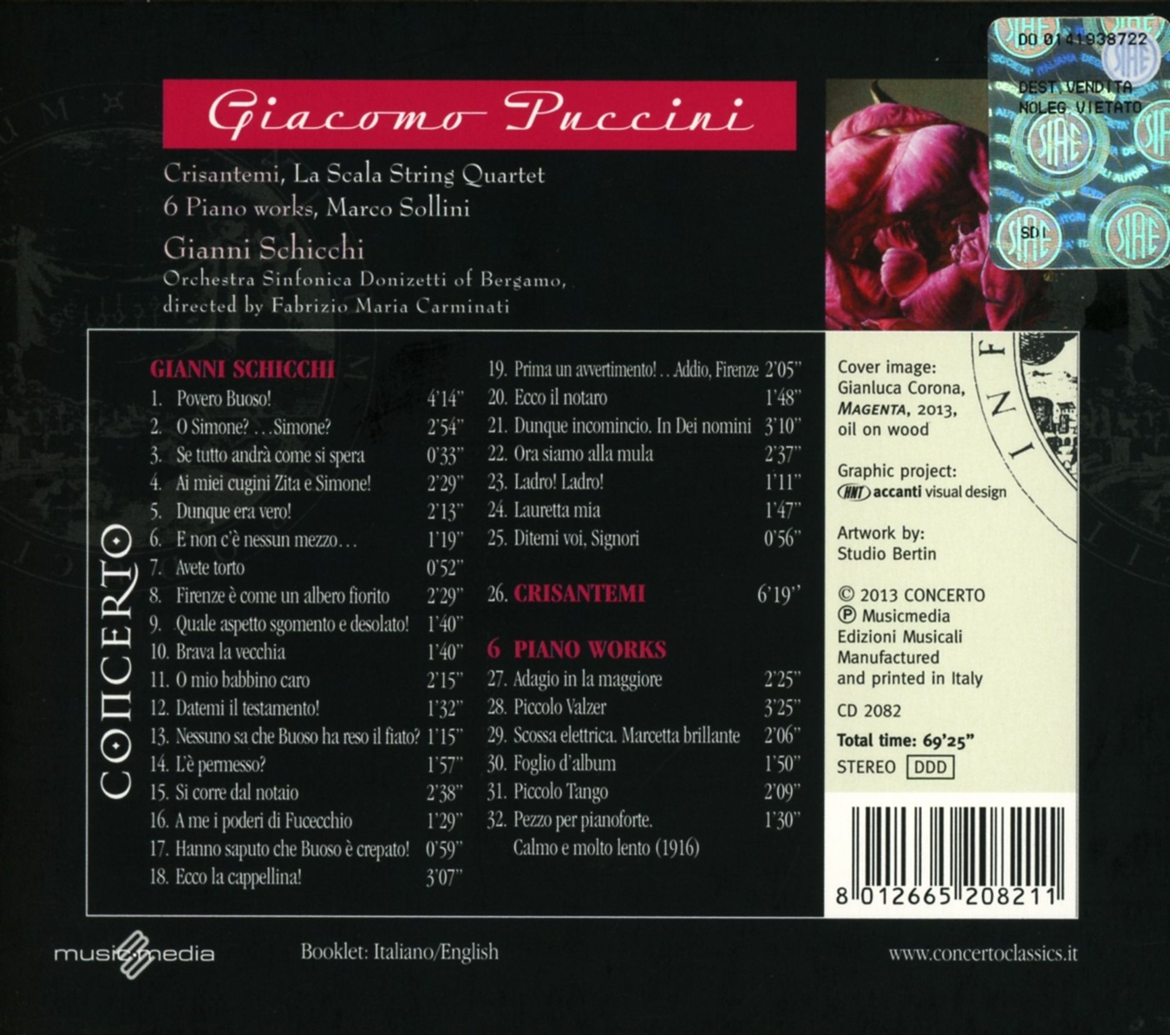 - Roberto Servile, Cincia Rizzone, Francesco Piccoli, Anna Rita Gemmabella, Milena Josipovic, Marco Sollini, La Scala String Quartet, Orchestra Sinfonica Donizetti of Bergamo, Fabrizio Maria Carminati