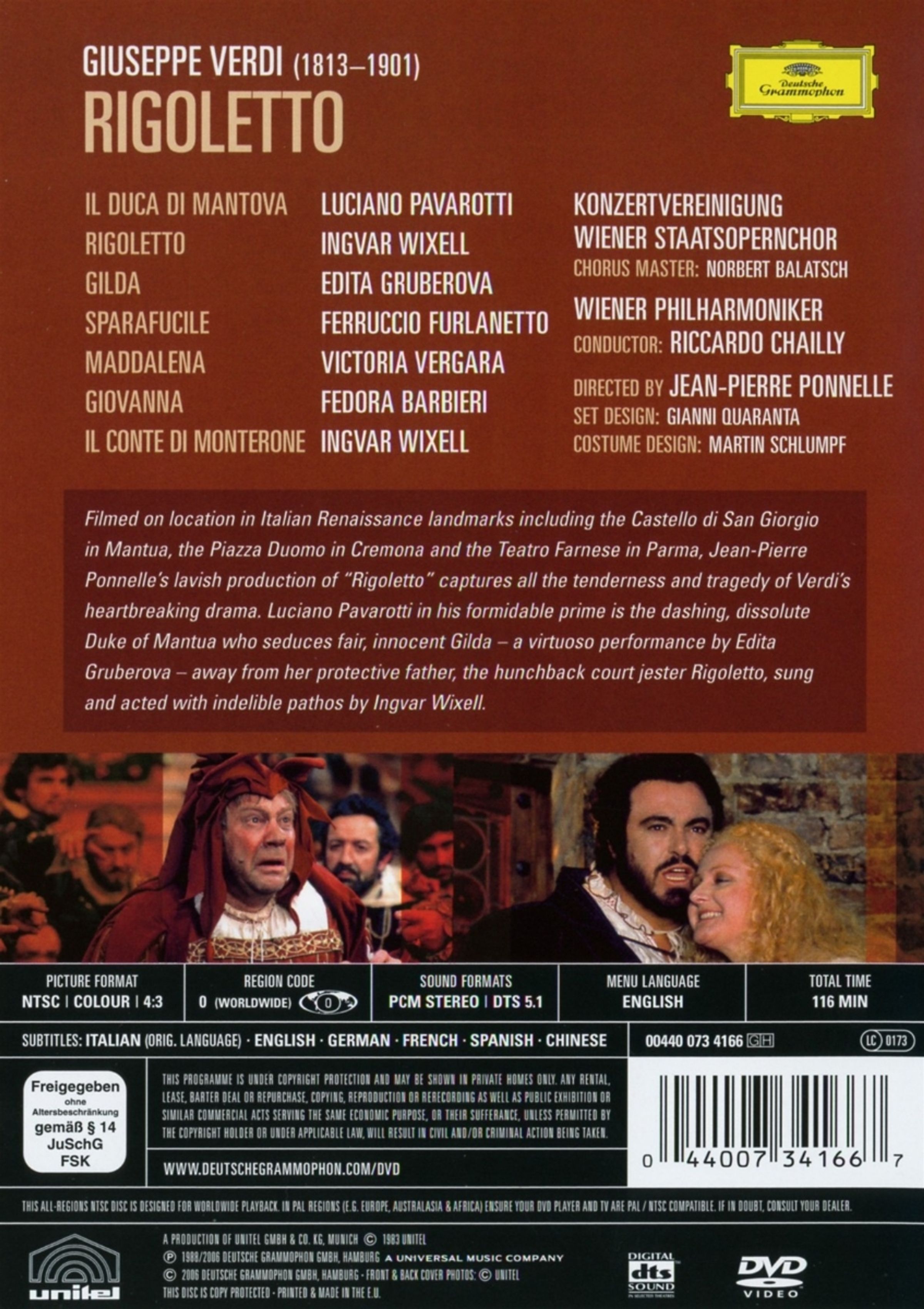 Gefilmt an italienischen Renaissance-Schauplätzen in Mantua, Cremona & Parma. Regie: Jean-Pierre Ponnelle.