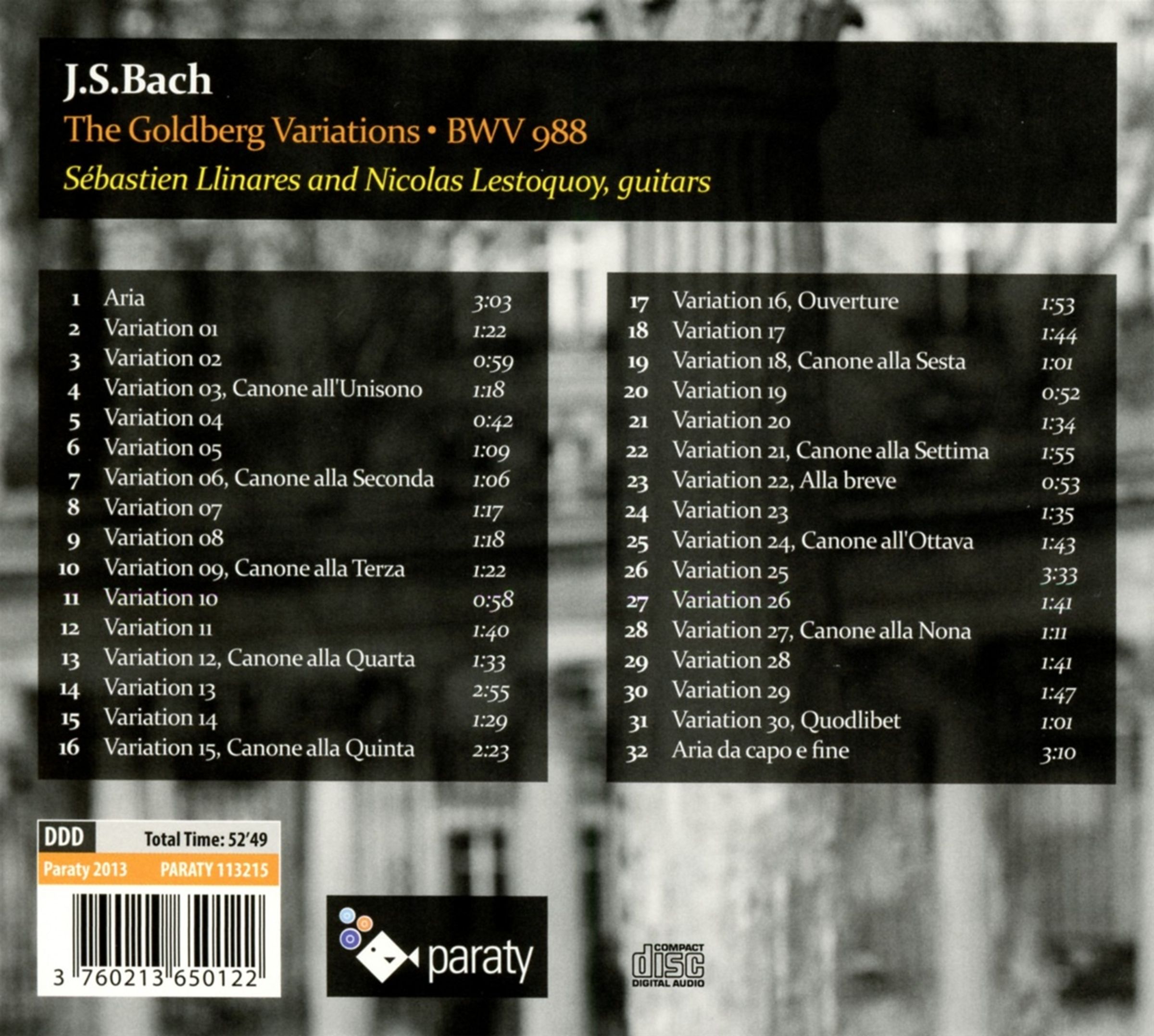 Johann Sebastian Bach: Goldberg-Variationen BWV 988 für zwei Gitarren auf CD