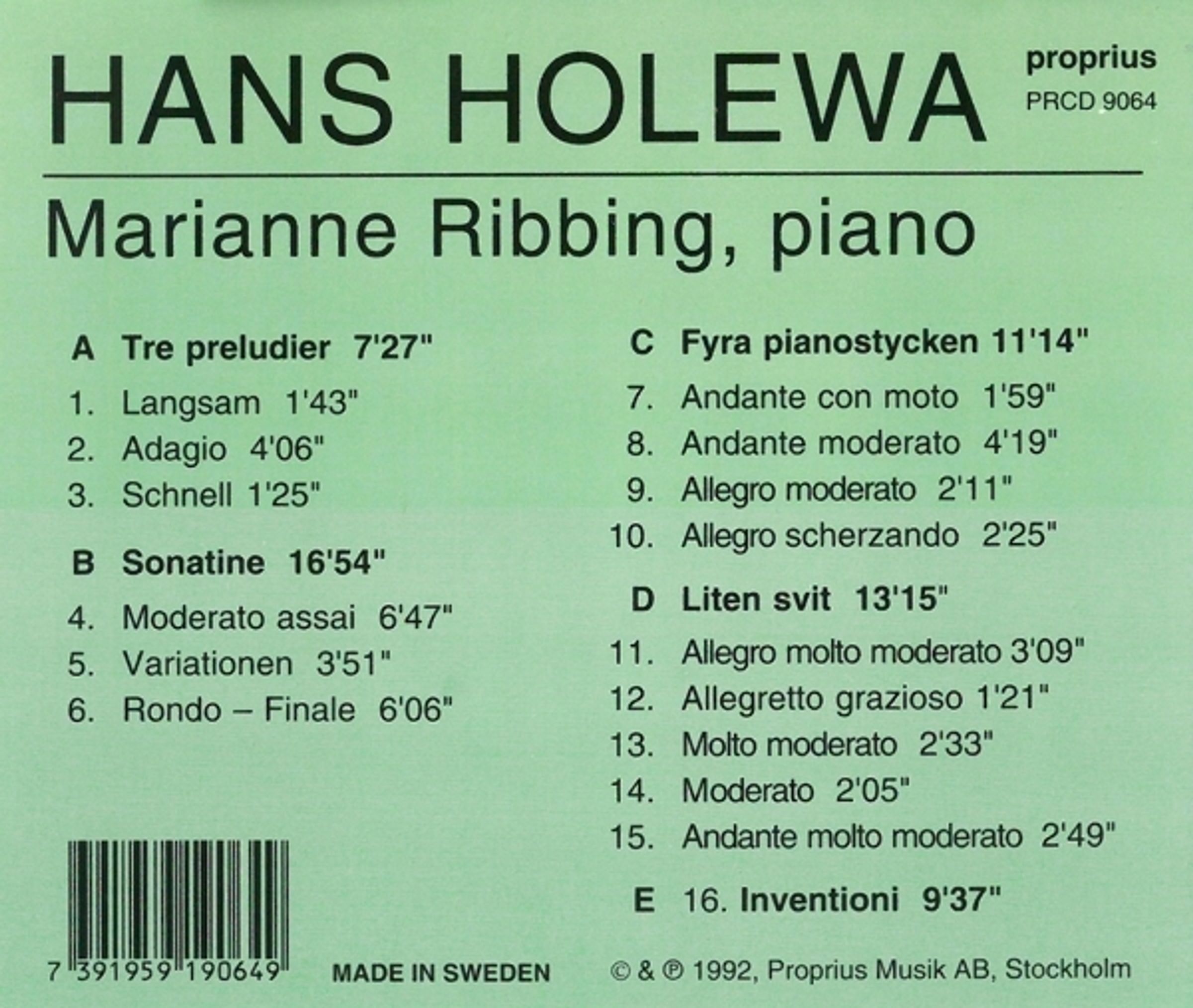 3 Präludien; Sonatine; 4 Klavierstücke; Kleine Suite; Inventionen