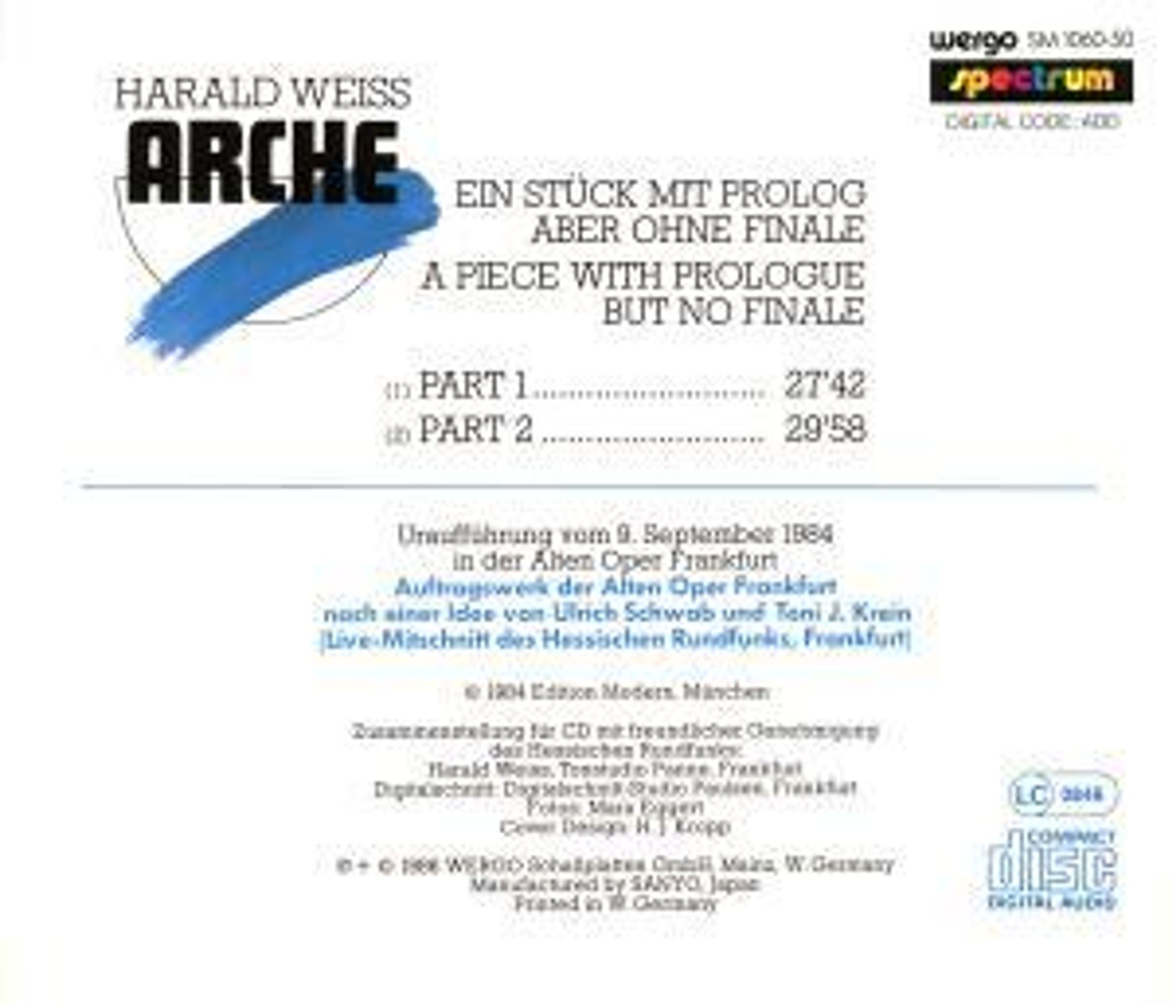 Harald Weiss: Arche I & II auf CD