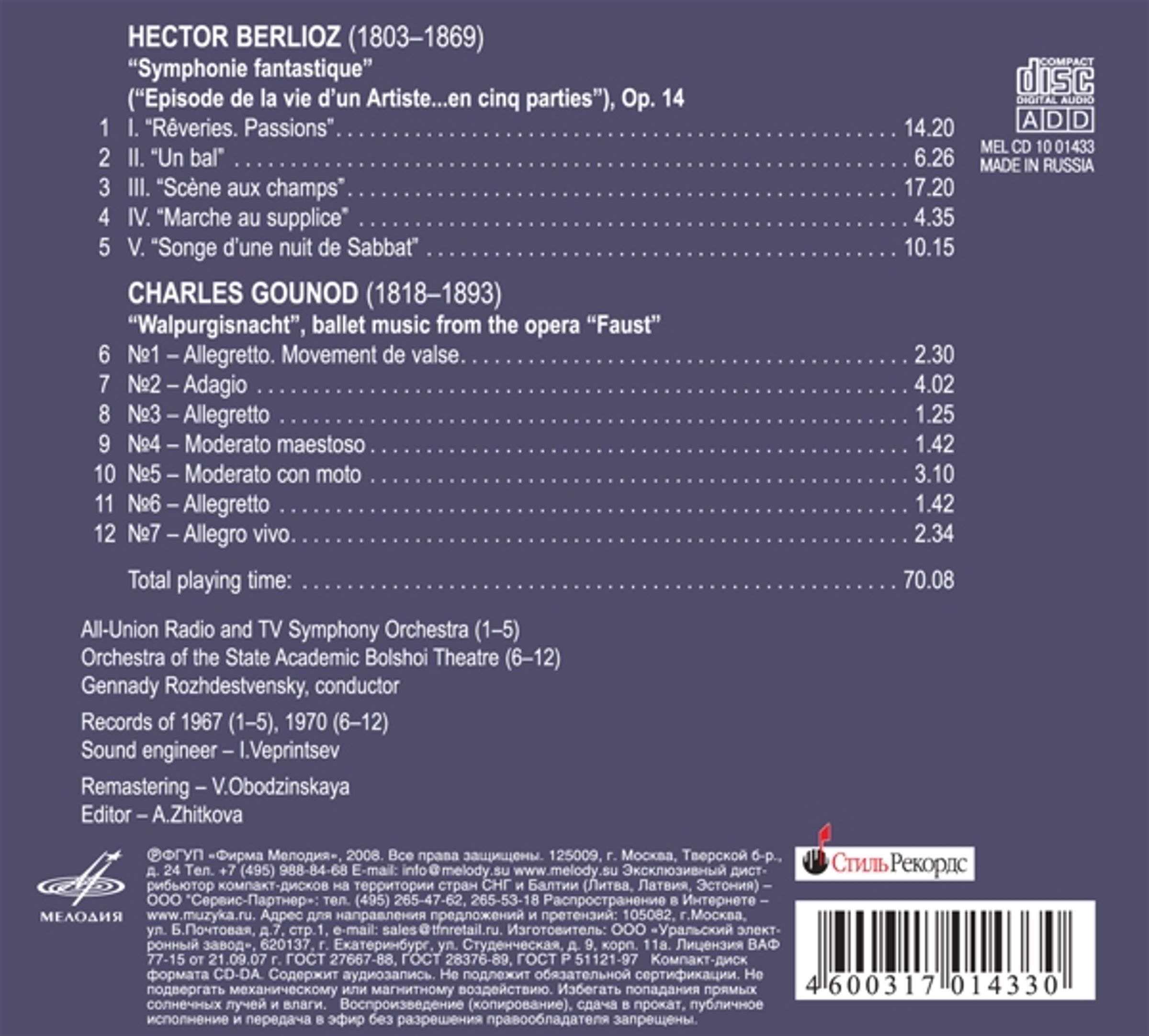 - All-Union Radio and TV SO, Bolshoi Theatre Orchestra, Gennadi Roshdestvensky