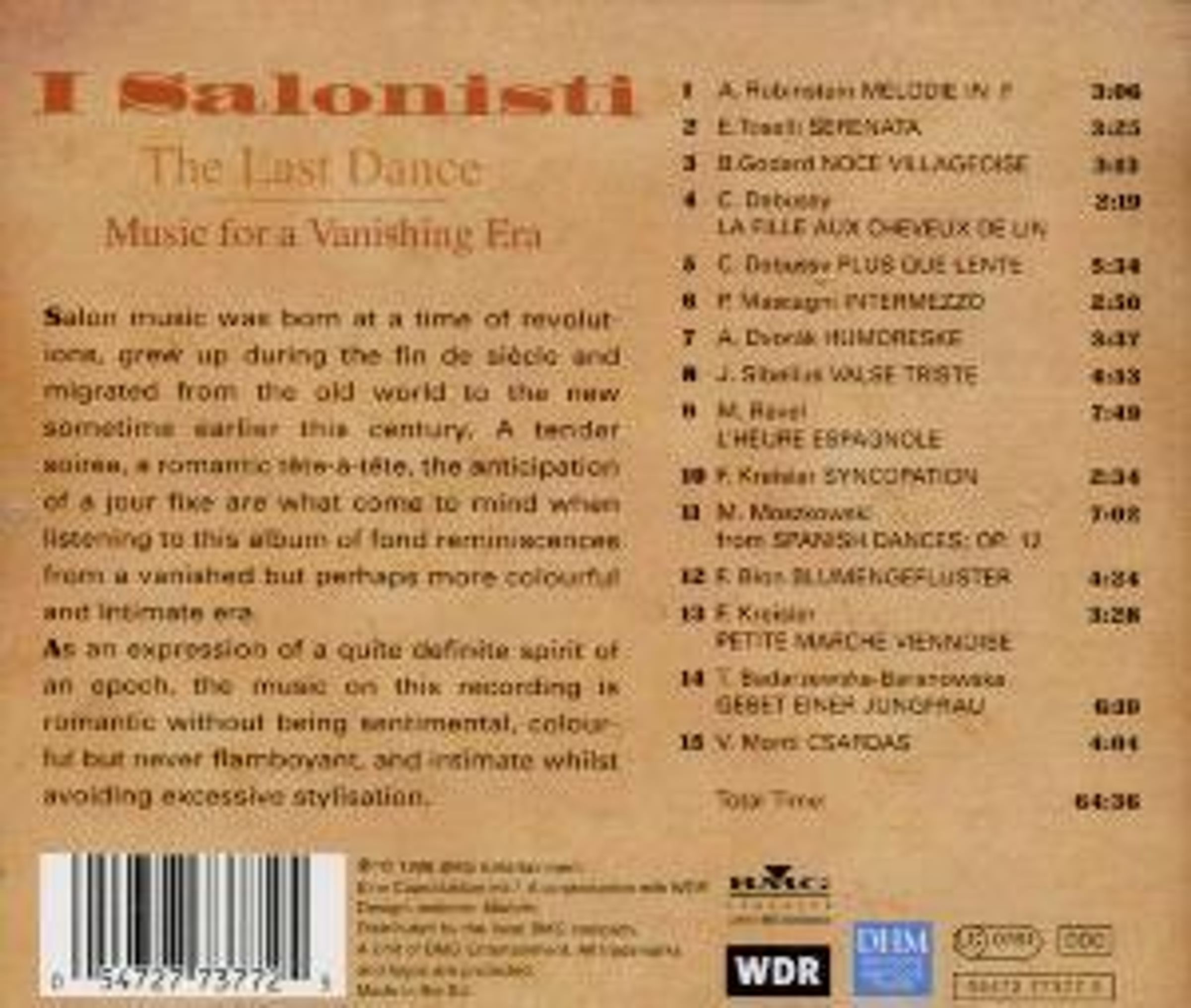 Werke von Rubinstein, Toselli, Godard, Debussy, Mascagni, Dvorak, Sibelius, Kreisler, Blon, Monti, Badarzewska-Baranowska ("Gebet einer Jungfrau"),Ravel, Moszkowski