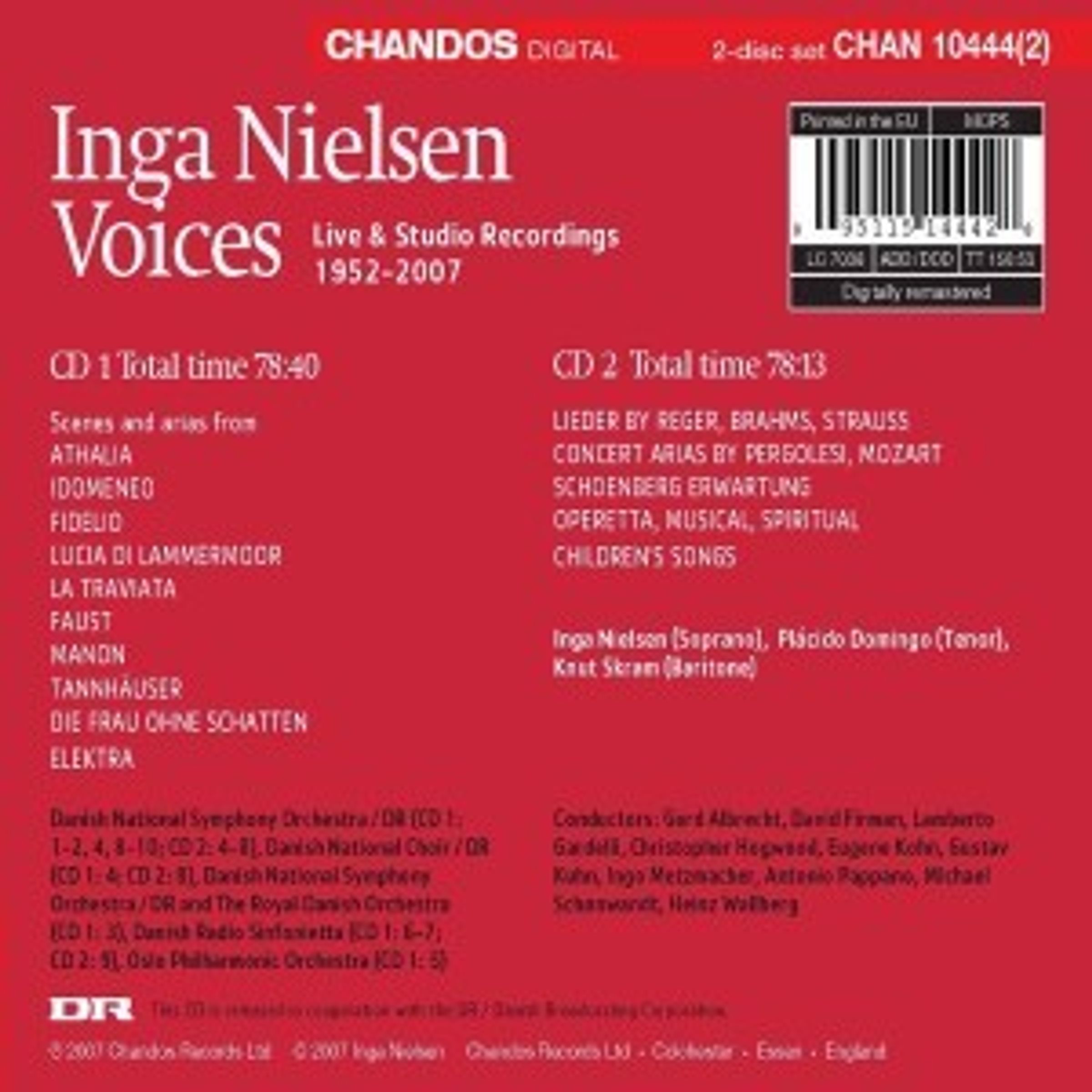 Chandos Records is proud to release a 2-CD collection featuring the legendary Danish soprano Inga Nielsen.