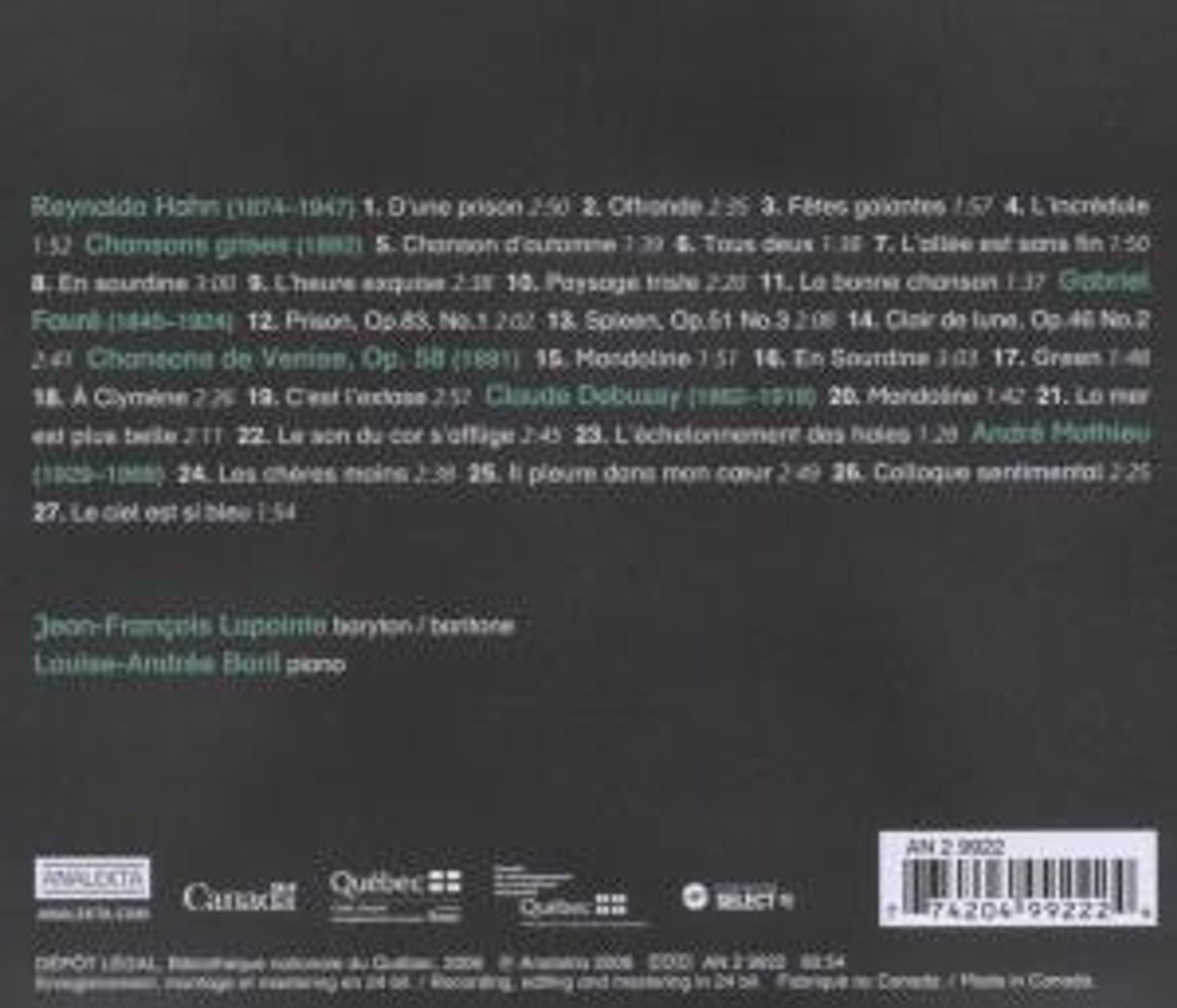 Hahn: D'une prison; Offrande; Fetes galantes; L'incredule; Chansons grises