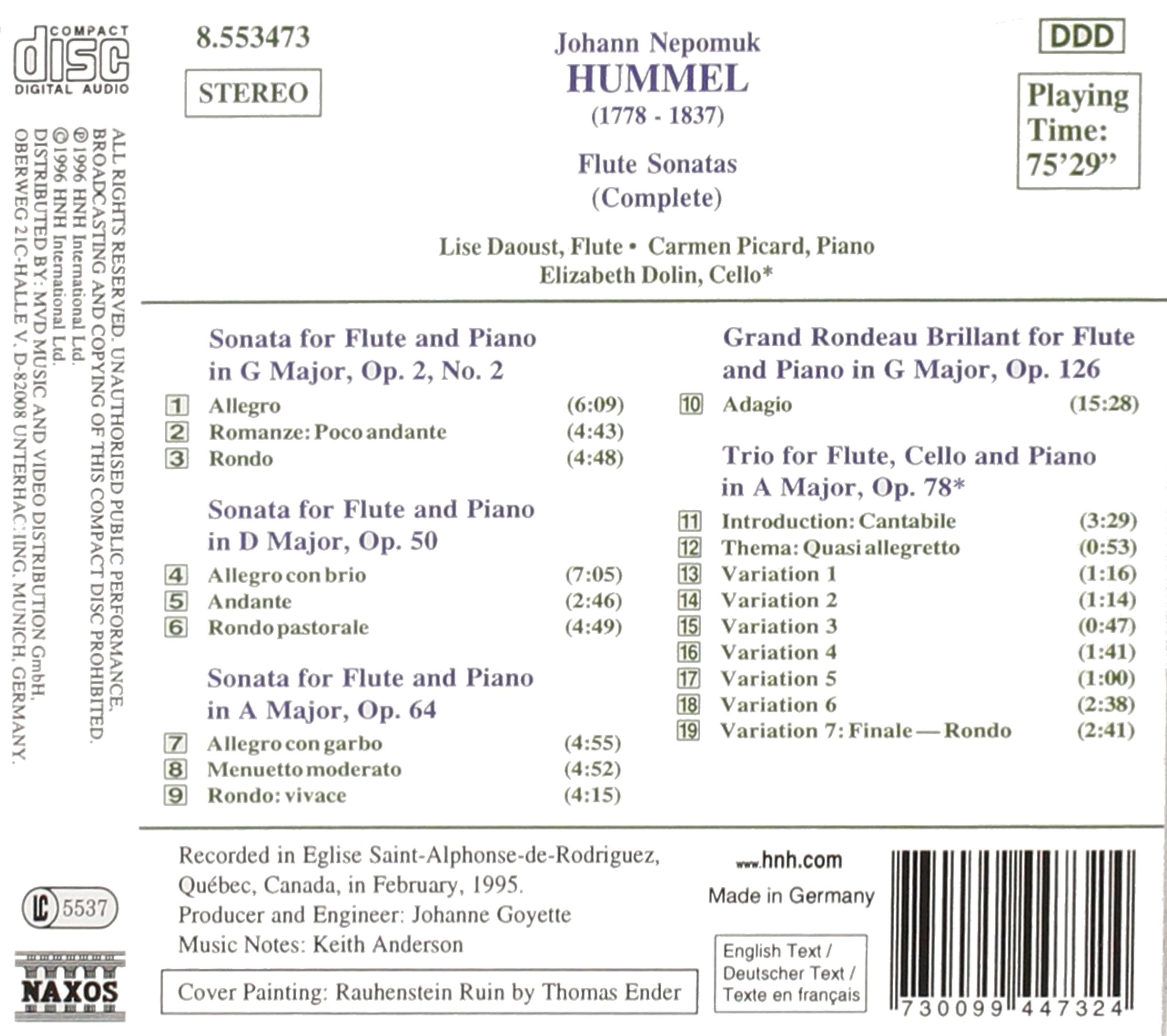Johann Nepomuk Hummel: Flötentrio op.78 auf CD