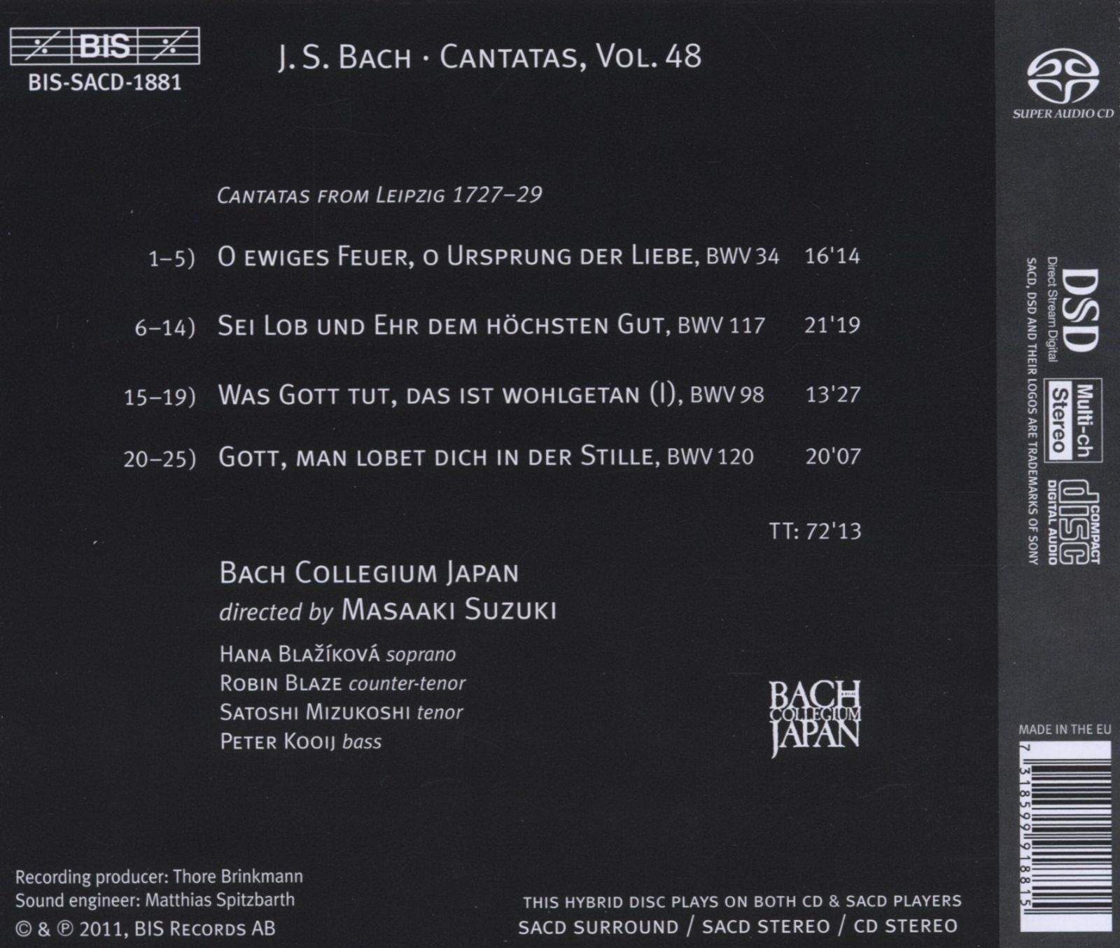 - Hana Blazikova, Robin Blaze, Satoshi Mizukoshi, Peter Kooij, Bach Collegium Japan, Masaaki Suzuki