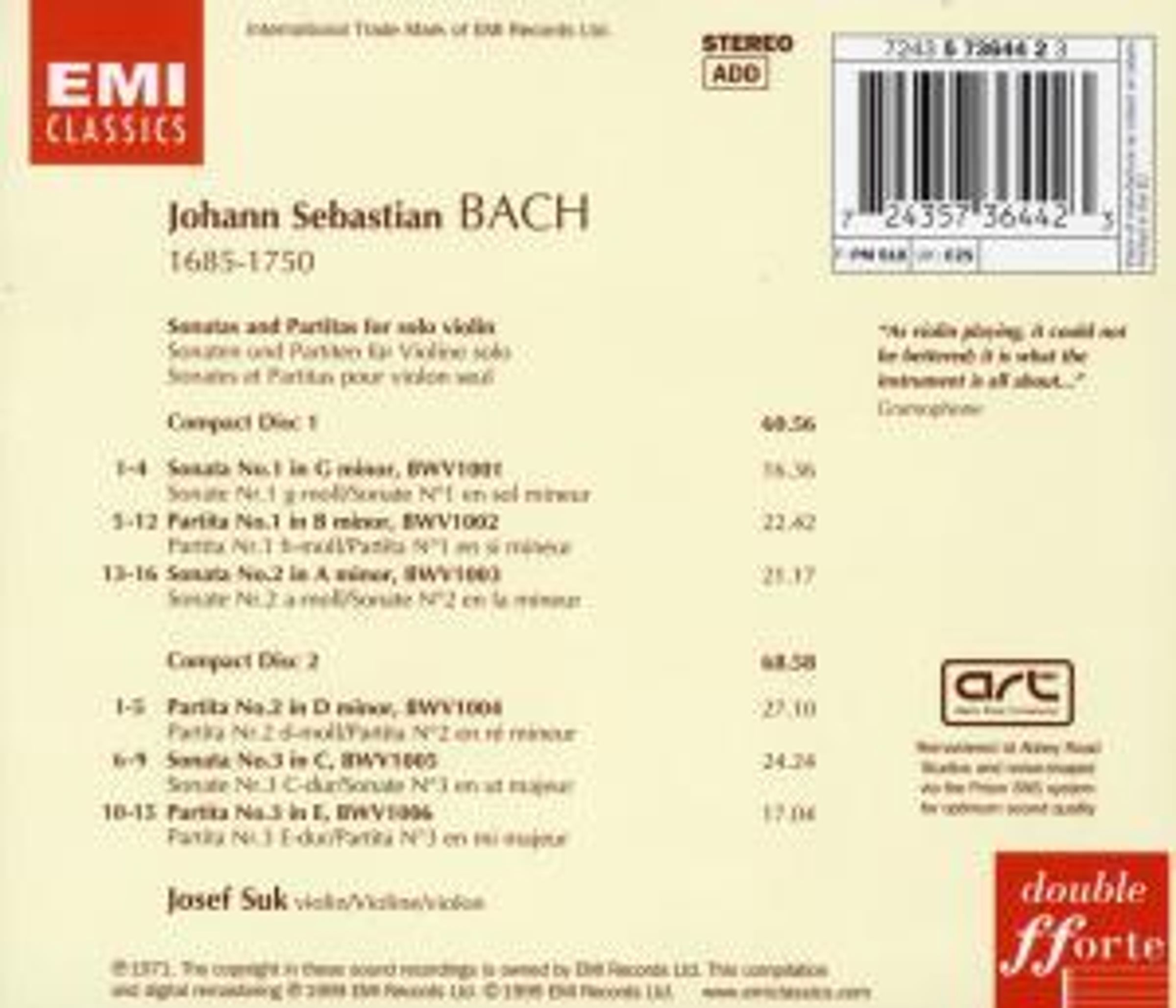 Johann Sebastian Bach: Sonaten & Partiten für Violine BWV 1001-1006 auf 2 CDs