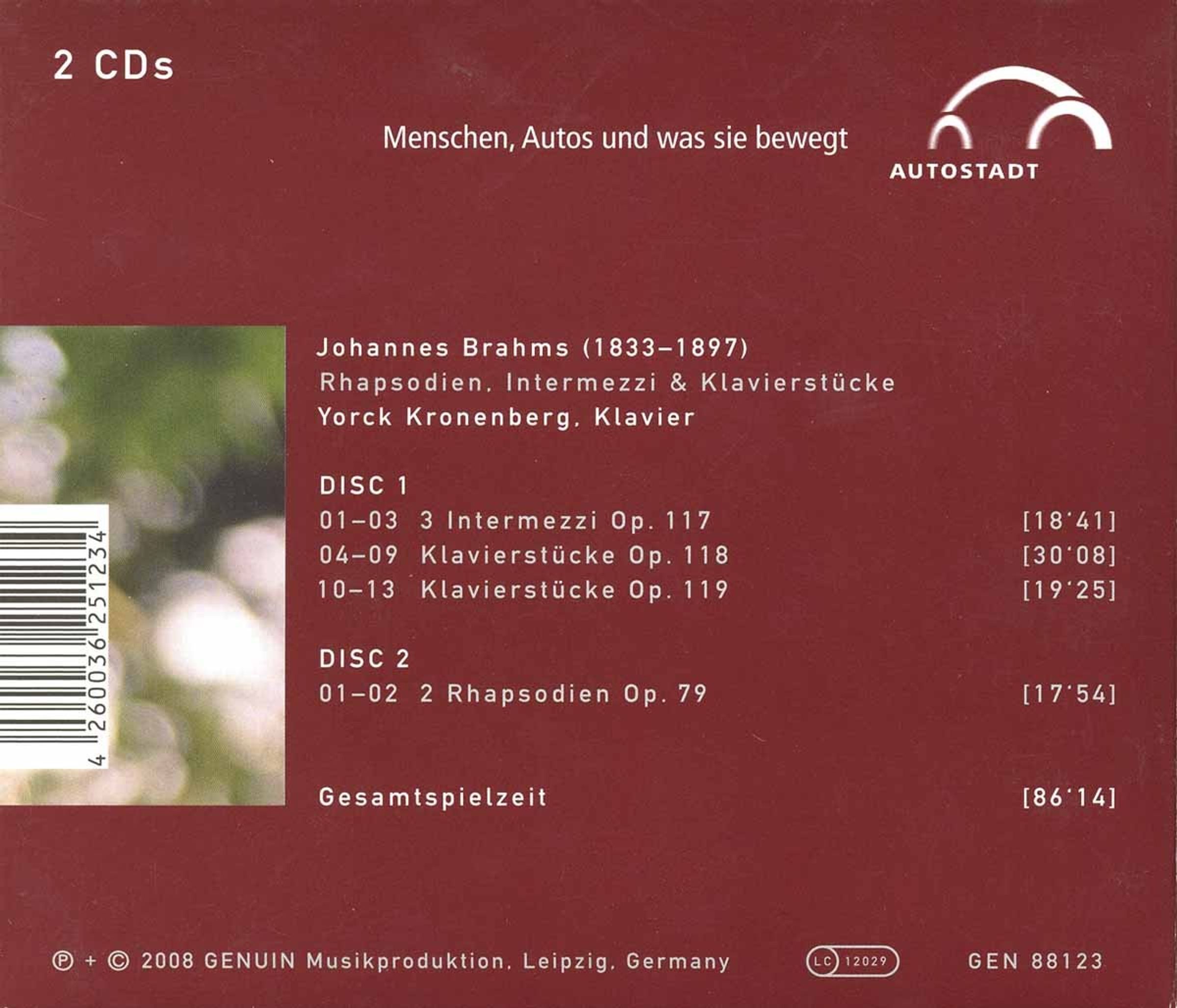 Intermezzi op. 117; Klavierstücke opp. 118 & 119; Rhapsodien op. 79 Nr. 1 & 2