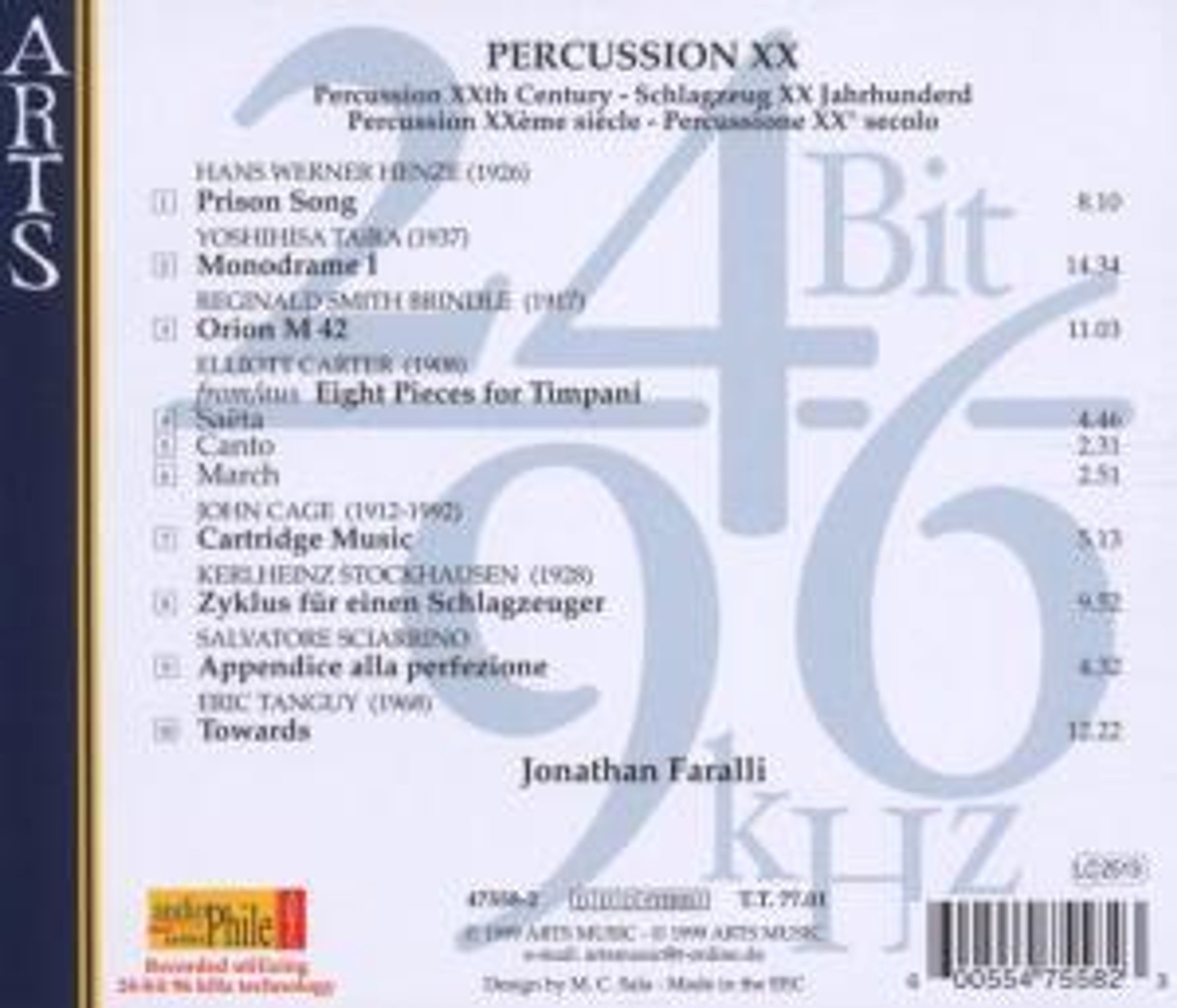 In einem atemberaubenden Feuerwerk faszinierender Musik des 20. Jahrhunderts für Schlagwerk demonstriert Jonathan Faralli seine Meisterschaft und gibt uns zugleich die Möglichkeit die neue klangliche Dimension der 24 Bit / 96 kHz Technik voll auszukosten: