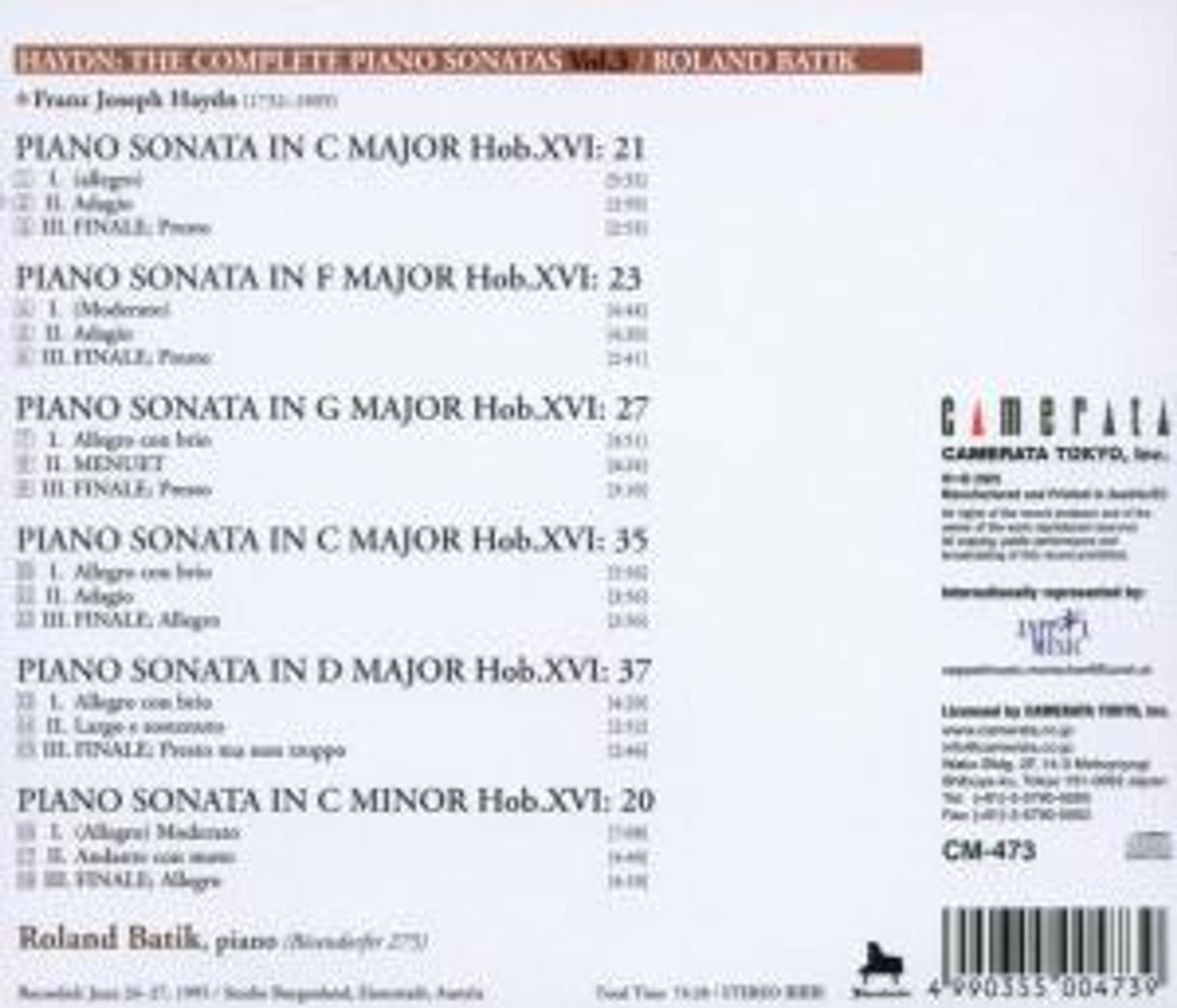 Die Hörproben gehören zum Artikel Joseph Haydn (1732-1809): Sämtliche Klaviersonaten Vol.3 (CD). Das Tracklisting kann bei diesem Artikel ggf. abweichen.