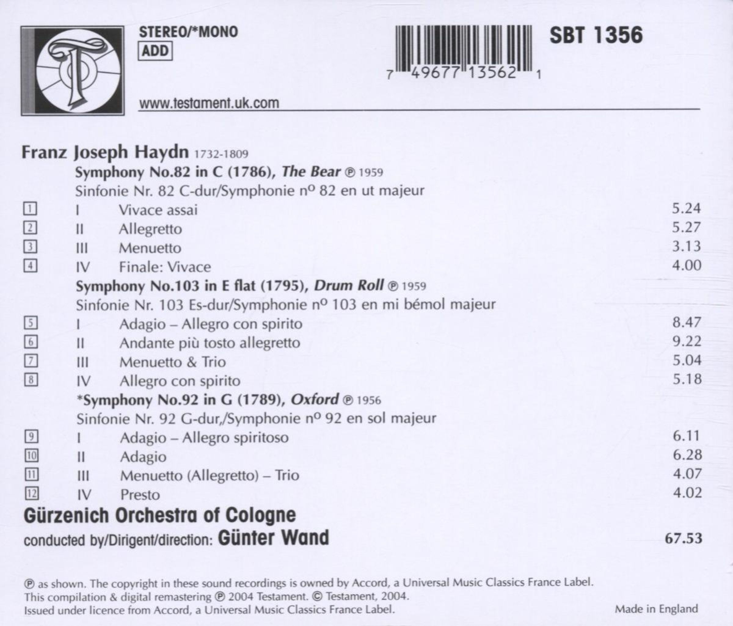 Testament beglückt uns mit weiteren Veröffentlichungen von Aufnahmen Günter Wands mit dem Gürzenich Orchester Köln. Schwerpunkt des diesmal dreiteiligen Wand-Pakets ist Josef Haydn, was nicht verwundern sollte, denn zu dessen Musik hatte Wand zeitlebens ein enges Verhältnis, auch wenn man Wand als Bruckner-Exegeten vermarktete. Ergänzt wird diese dreiteilige Serie durch die Aufnahmen zweier Sinfonien Franz Schuberts, der mit Mozart und Bruckner für Wand so etwas wie die heilige Trinität der Komponisten darstellte.
