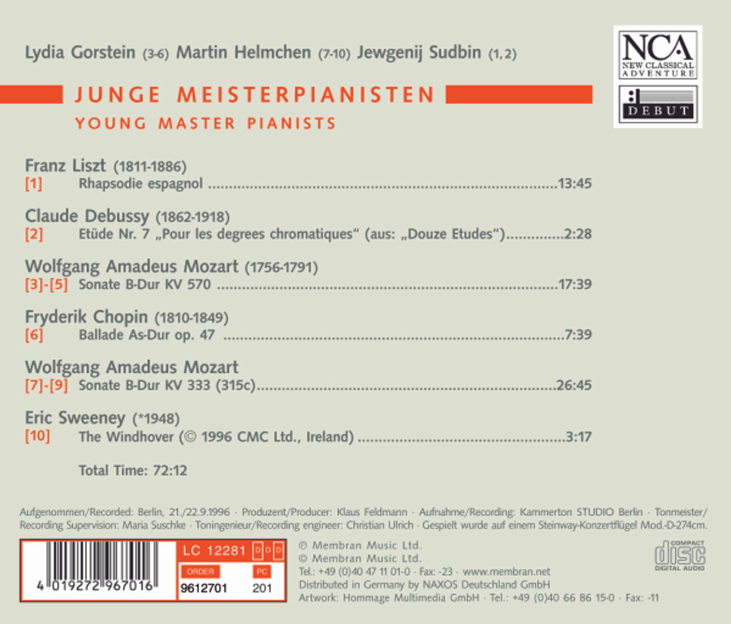 - Lydia Gorstein, Martin Helmchen, Yevgeny Sudbin (Klavier)