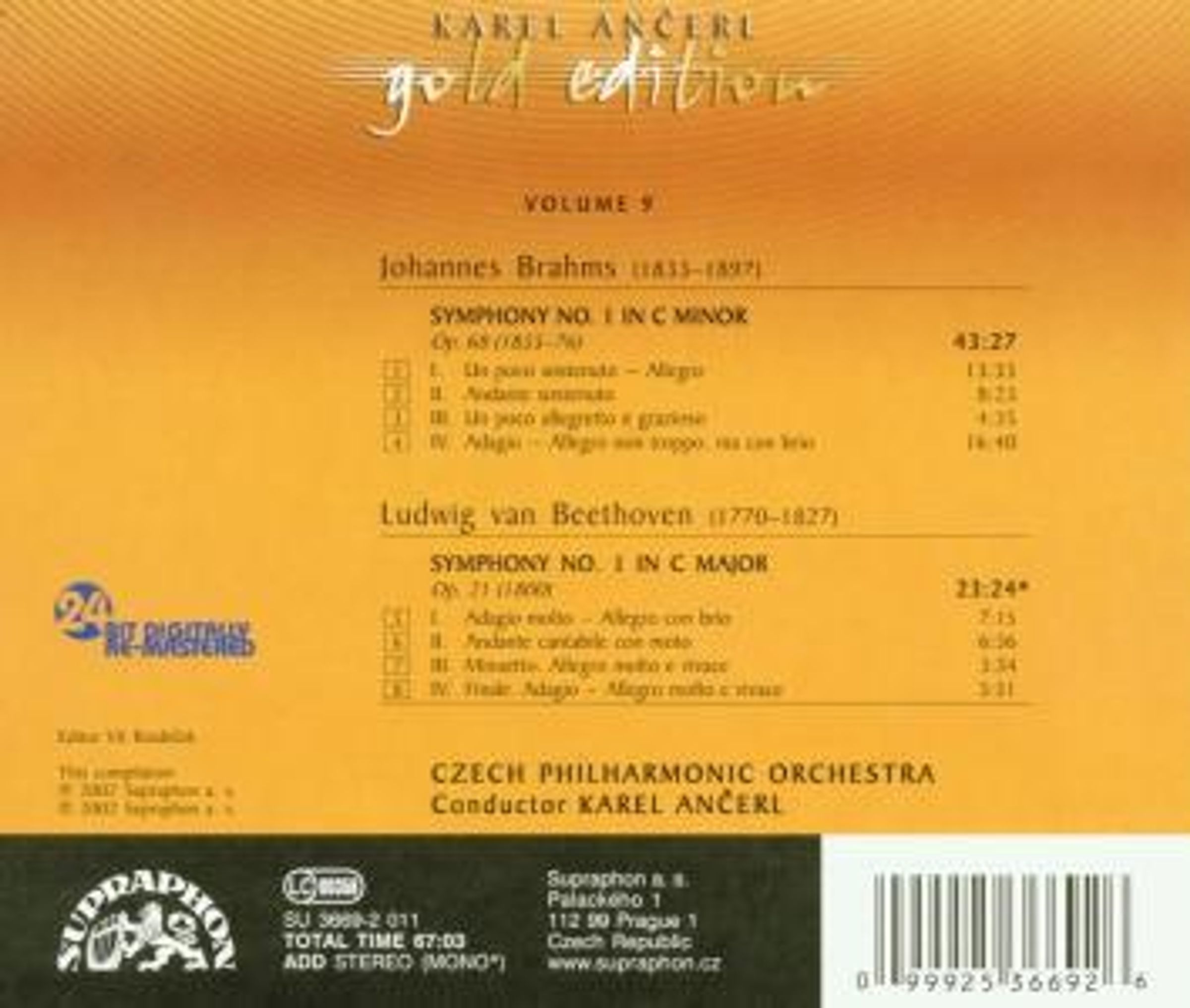 The current release of Volumes 7 - 12 of the Ancerl Gold Series is centered chiefly around works of the Czech repertoire. From the original, truly inimitable idiom of Leos Janacek, the orchestra´s sonic trajectory leads through music by giants of melody Dvorak and Suk, to the twentieth century, exemplified by Kabelac´s and Hanus´s sonic probes into the depths of philosophical and musical wit, and by displays of sunny joie de vivre in masterpieces by Bohuslav Martinu. The international repertoire is represented by Ancerl´s delectable readings of the symphonic debuts of Beethoven and Brahms, plus his equally rewarding treatment of the challenge posed by the dazzling invention of the youthful output of the daring master of Neo-Classical style Sergey Prokofiev, with some first-class soloists, including Svyatoslav Richter, turning this into a truly memorable listening experience.