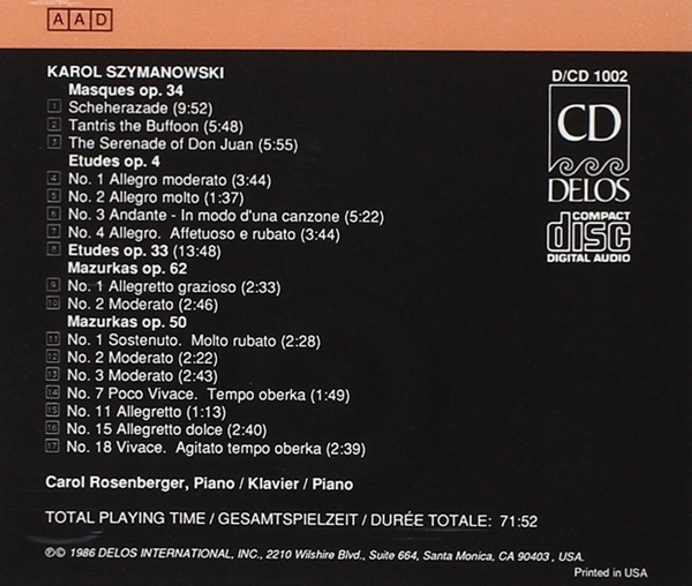 +Mazurken op. 50 Nr. 1-3, 7, 11, 15, 18; op. 62 Nr. 1 & 2; Masques op. 34