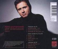 Man betrachtet ihn als bedeutendsten polnischen Komponisten zwischen Chopin und den modernen Meistern Witold Lutoslawski und Krzysztof Penderecki. Szymanowskis Orchesterwerke sind seit einigen Jahren gut bekannt – nicht zuletzt durch die Referenzaufnahmen von Sir Simon Rattle. Die Soloklaviermusik dagegen hat sich bisher nicht so sehr durchsetzen können. Piotr Anderszewski, wie alle großen Künstler immer auf der Suche nach neuen Herausforderungen, präsentiert drei Höhepunkte aus diesem Œuvre nun auf überzeugende Weise. Die höchst klangsinnlichen Werke dieser CD entstanden in den Jahren des Ersten Weltkrieges. Szymanowski, ein ungemein gebildeter und weit gereister Mann, orientierte sich dabei an ganz verschiedenen Inspirationsquellen: Der Zyklus Métopes basiert auf Szenen aus Homers Odyssee, Masques zeichnet Bilder großer Gestalten aus der Weltliteratur. Die Sonate Nr. 3 ist ein architektonisches Meisterwerk, in dem der Komponist mit Möglichkeiten der atonalen Techniken experimentiert.