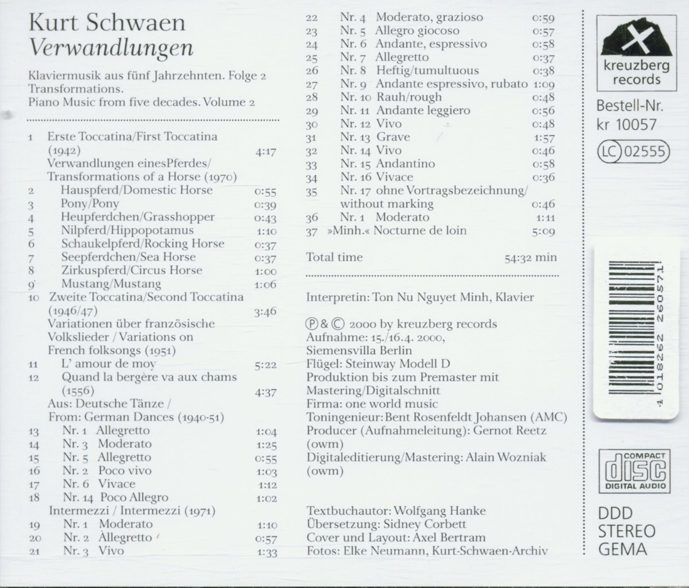 Kurt Schwaen: Klavierwerke II "Verwandlungen" auf CD