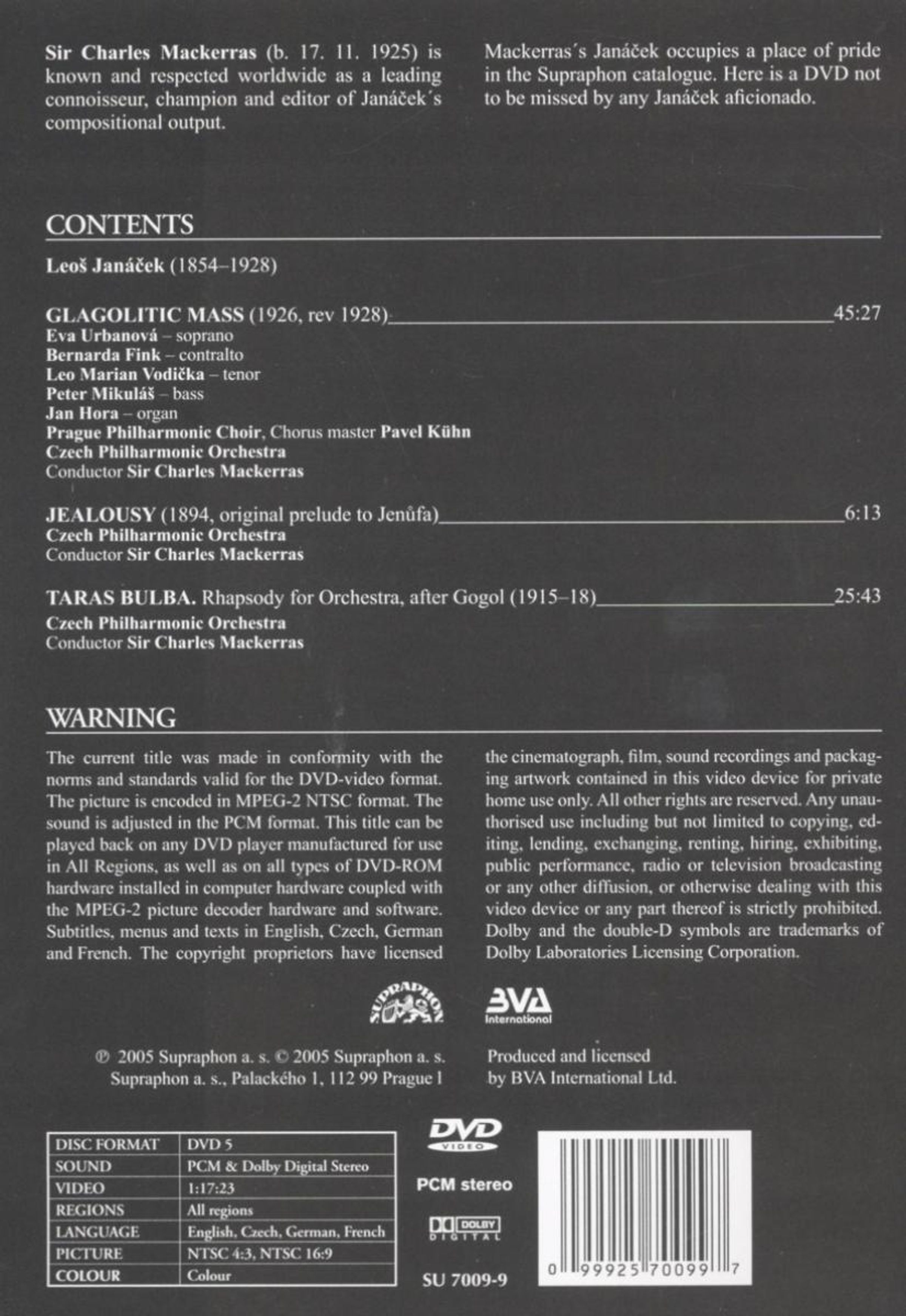 - Supraphon's January 2004 double album of Janacek's complete orchestral works performed by Mackerras and the Czech Philharmonic is now joined by a DVD of the monumental Glagolitic Mass. The DVD also features the overture Jealousy and the orchestral rhapsody Taras Bulba.