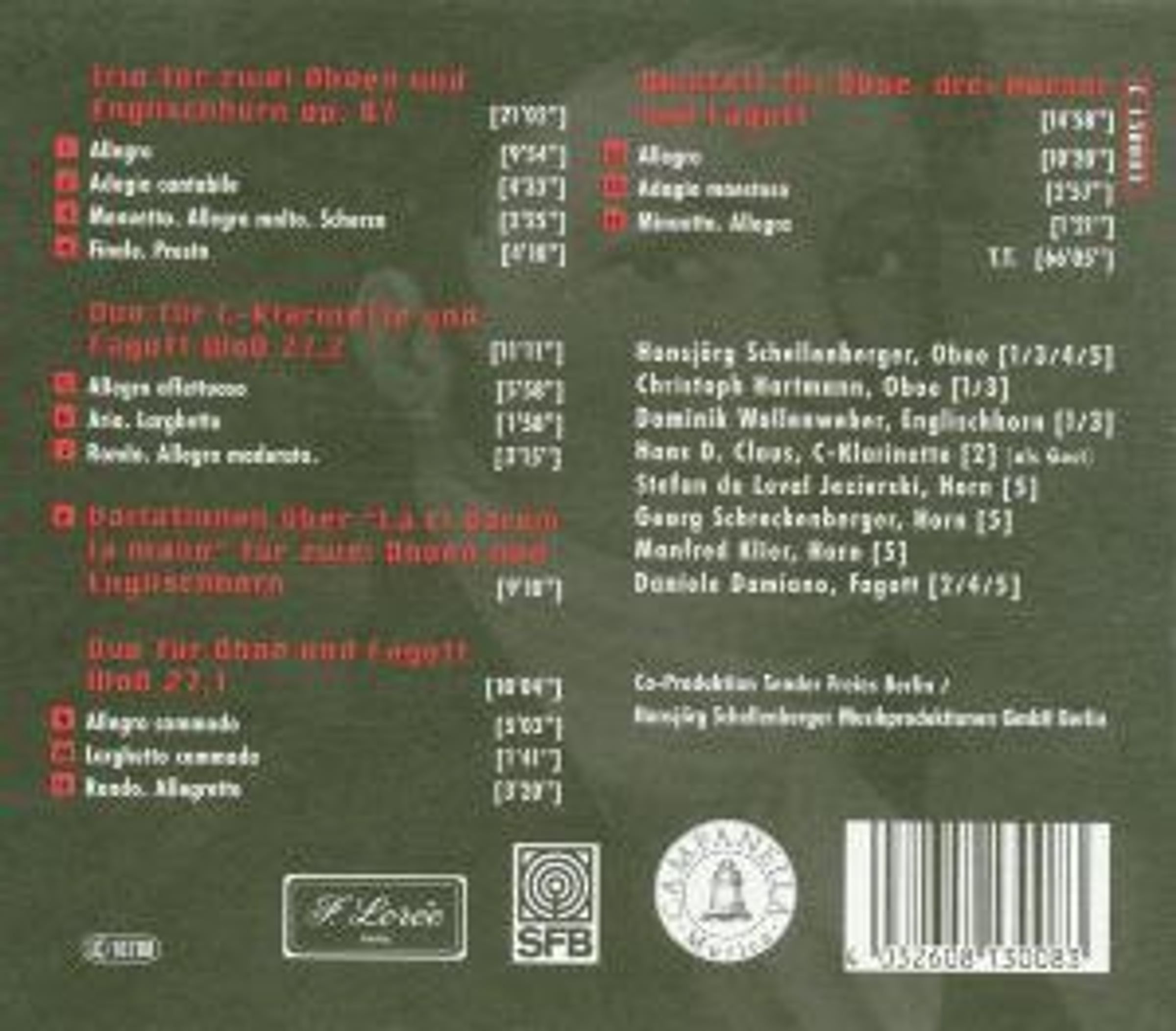 Trio op. 87 für 2 Oboen & Englischhorn; Duo WoO. 27 Nr. 1 für Oboe & Fagott; Duo WoO 27 Nr. 2 für Klarinette & Fagott; Mozart-Variationen für 2 Oboen & Englischhorn; Bläserquintett für Oboe, 3 Hörner, Fagott