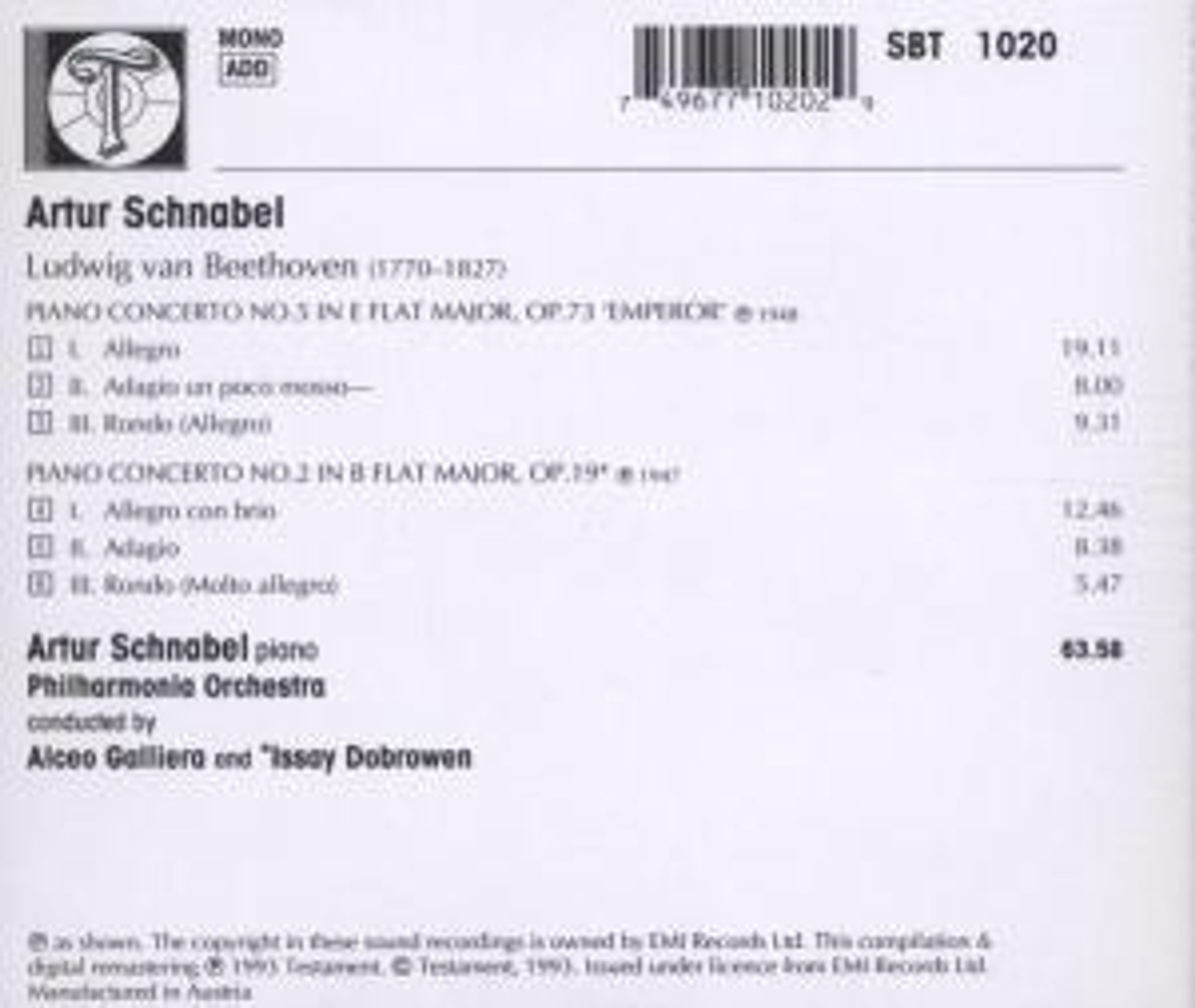 - Artur Schnabel, Philharmonia Orchestra, Issay Dobrowen, Alceo Galliera