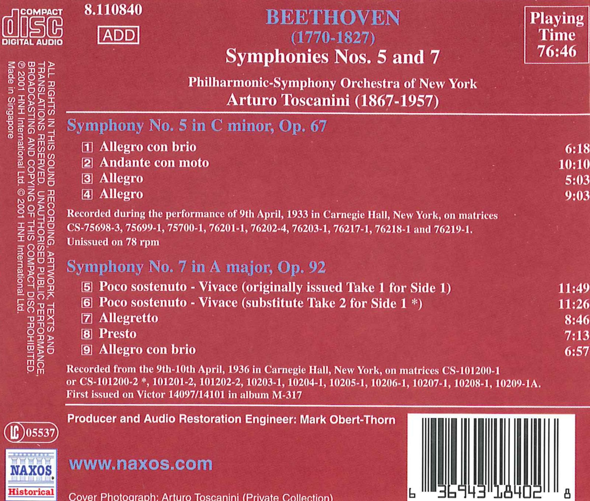 - New York Philharmonic Orchestra, Arturo Toscanini