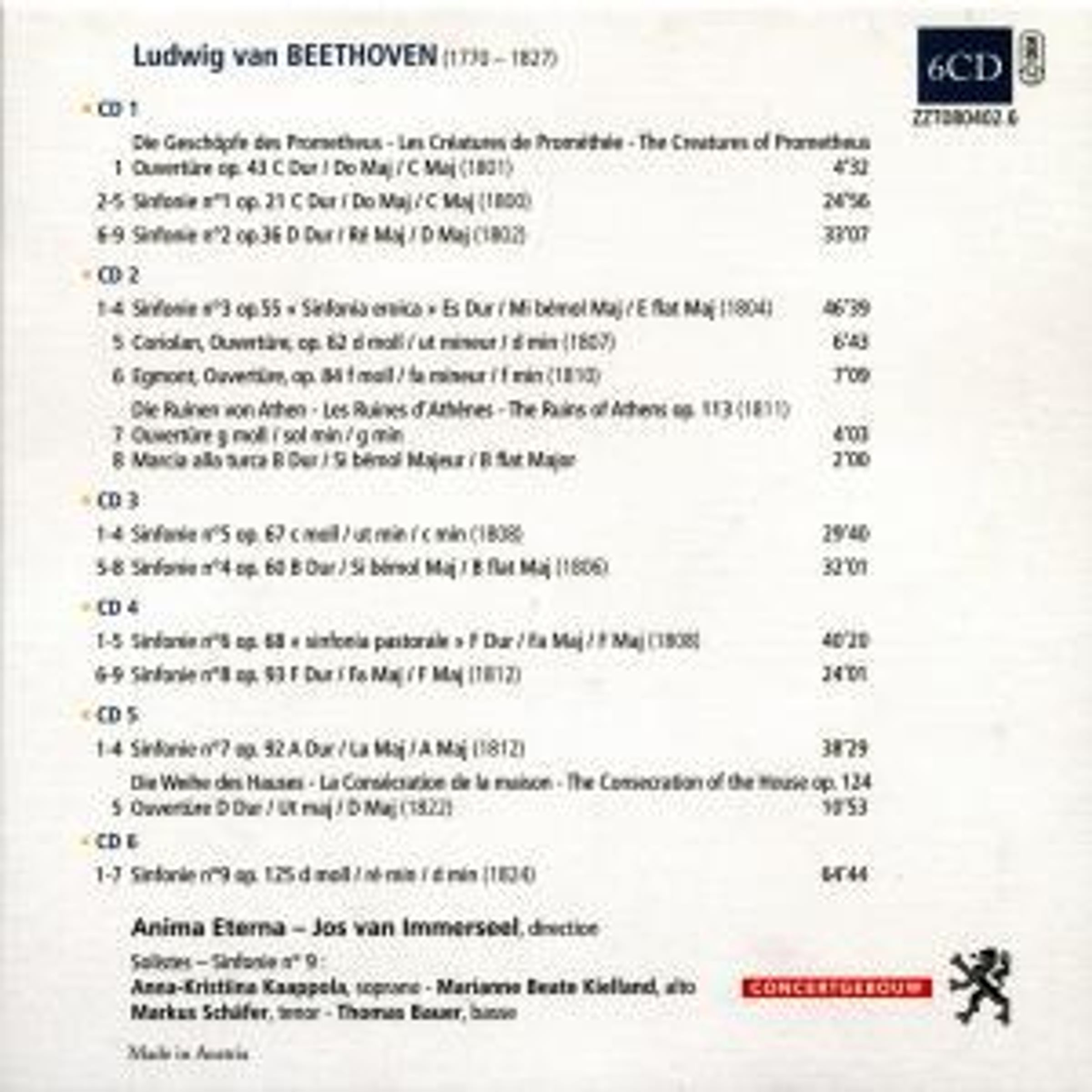 +Ouvertüren: Die Geschöpfe des Prometheus op. 43; Coriolan op. 62; Egmont op. 84; Die Ruinen von Athen op. l13; Die Weihe des Hauses op. 124
