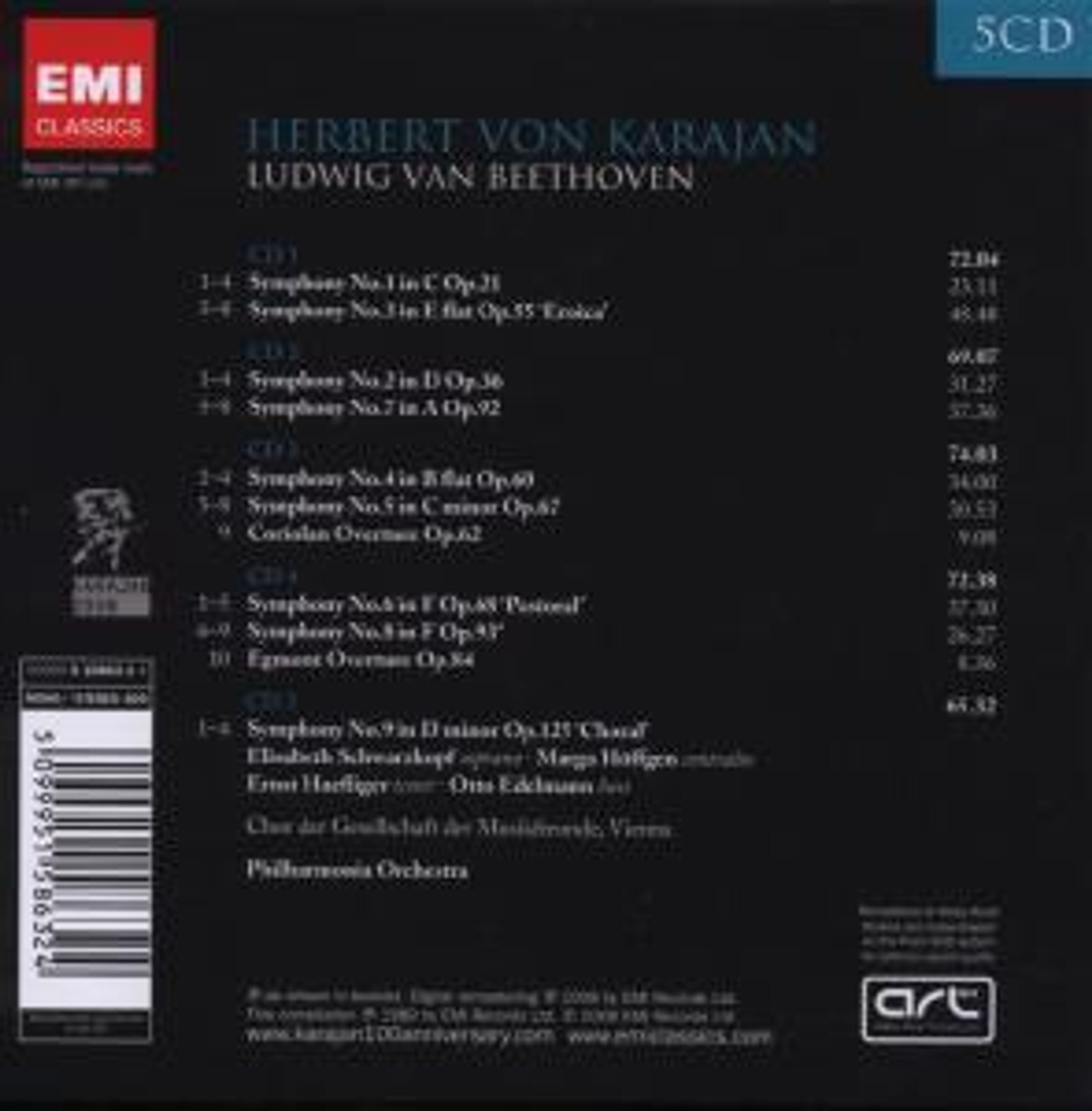 - Elisabeth Schwarzkopf, Marga Höffgen, Ernst Haefliger, Otto Edelmann, Chor der Gesellschaft der Musikfreunde Wien, Philharmonia Orchestra, Herbert von Karajan