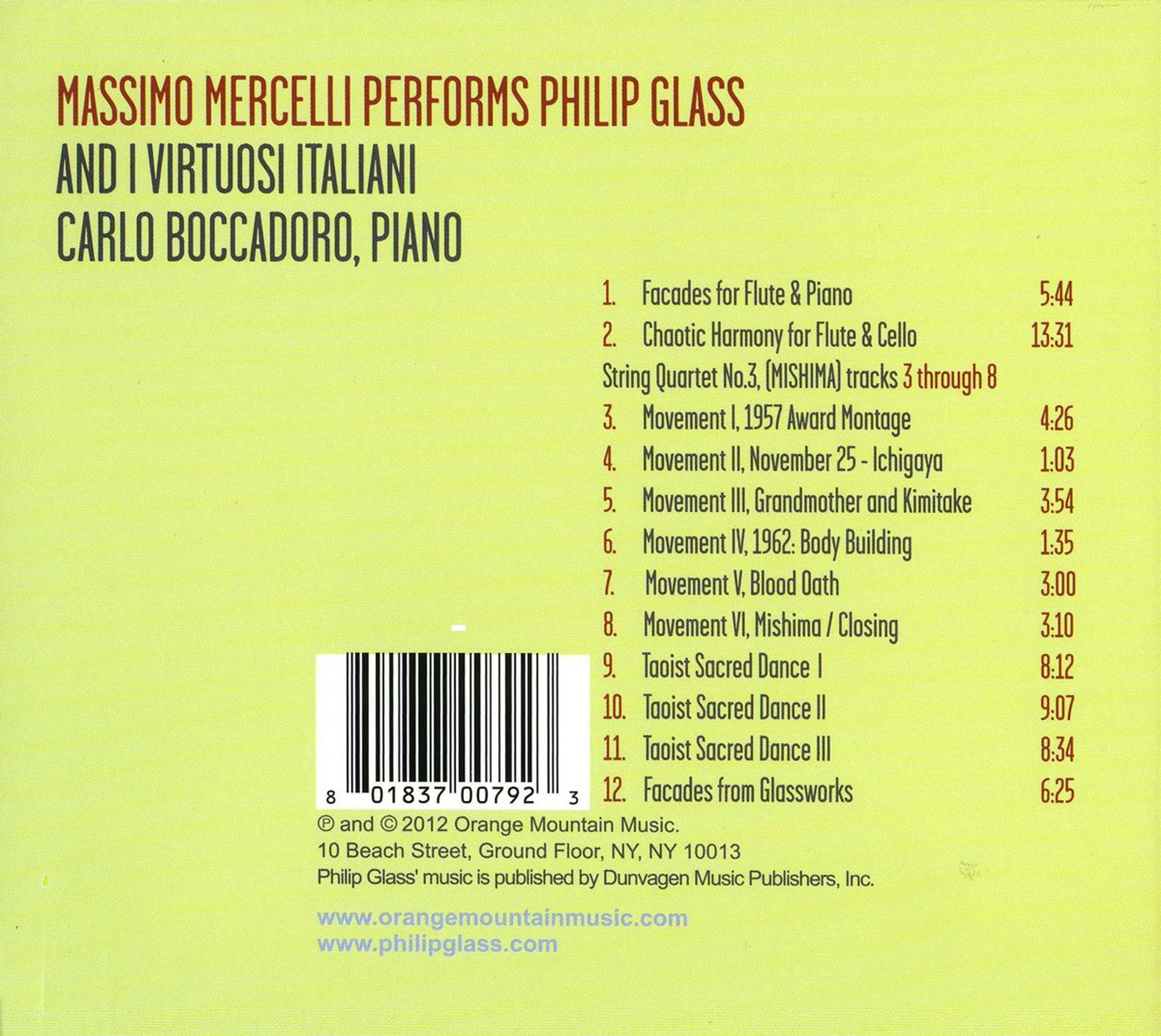 Facades für Flöte & Klavier; Chaotic Harmony für Flöte & Cello; Streichquartett Nr. 3; Taoist Sacred Dances I-III; Facades from Glassworks