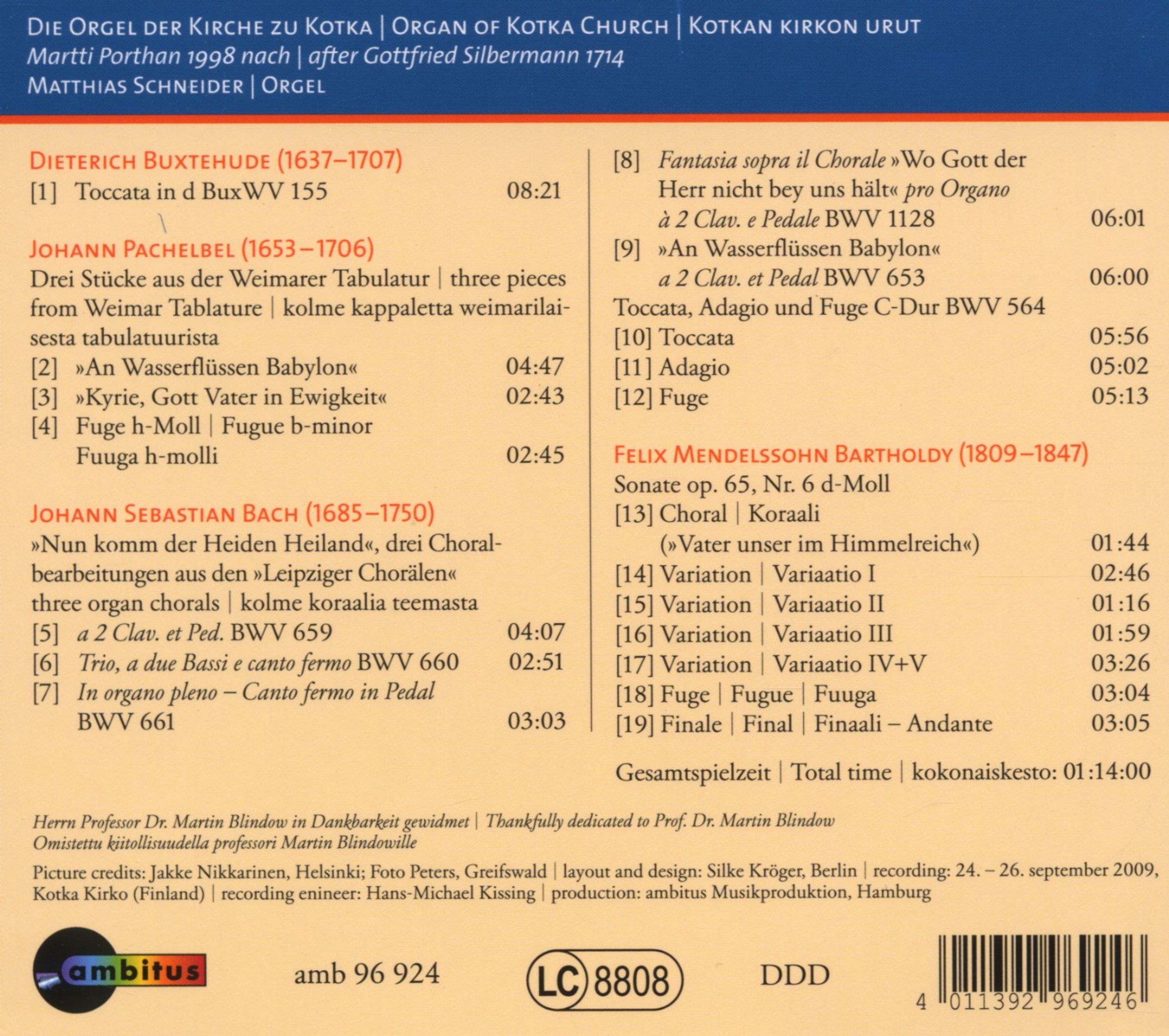 Matthias Schneider an der Orgel der Kirche zu Kotka auf CD
