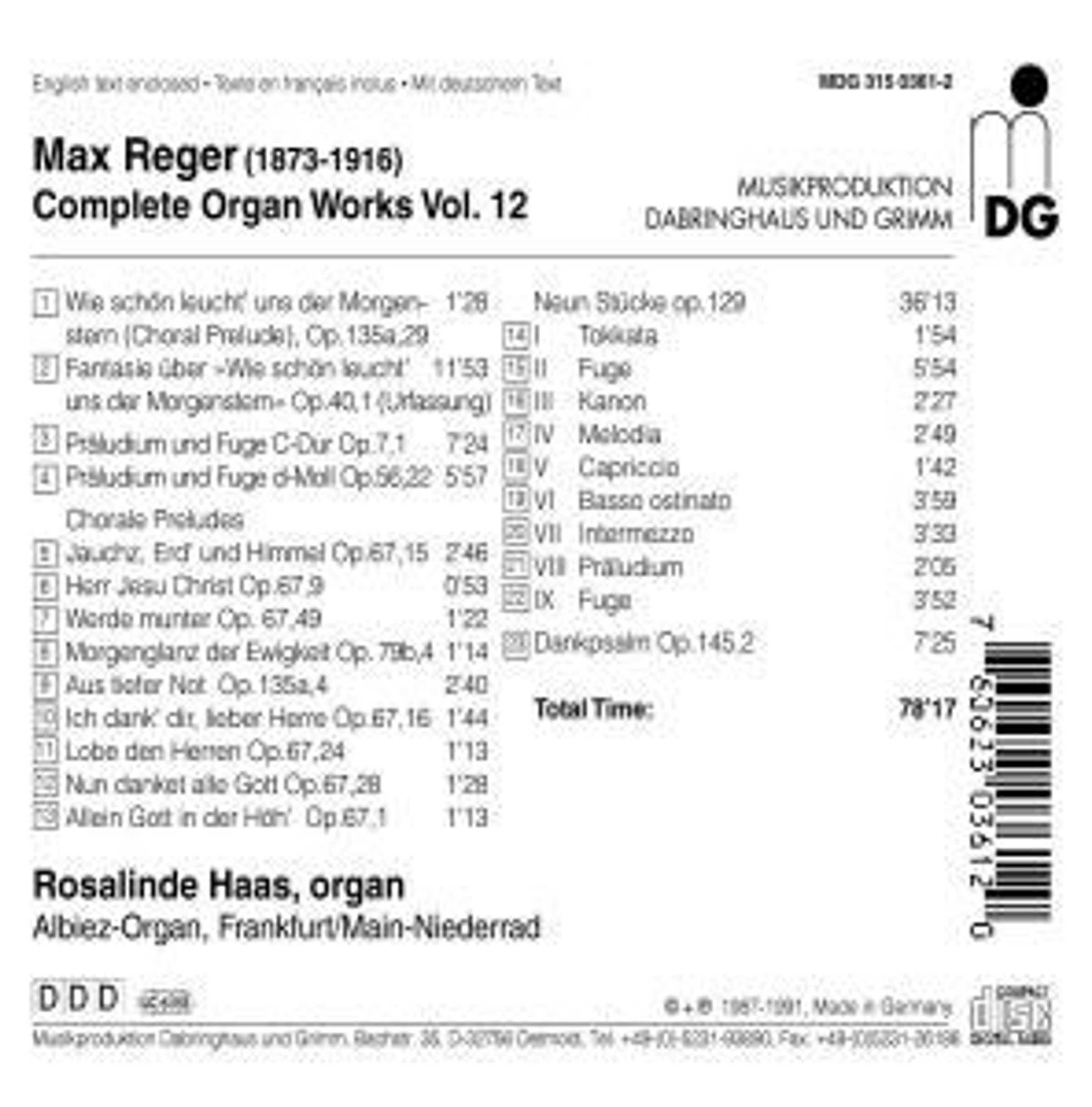 Max Reger: Sämtliche Orgelwerke Vol.12 auf CD