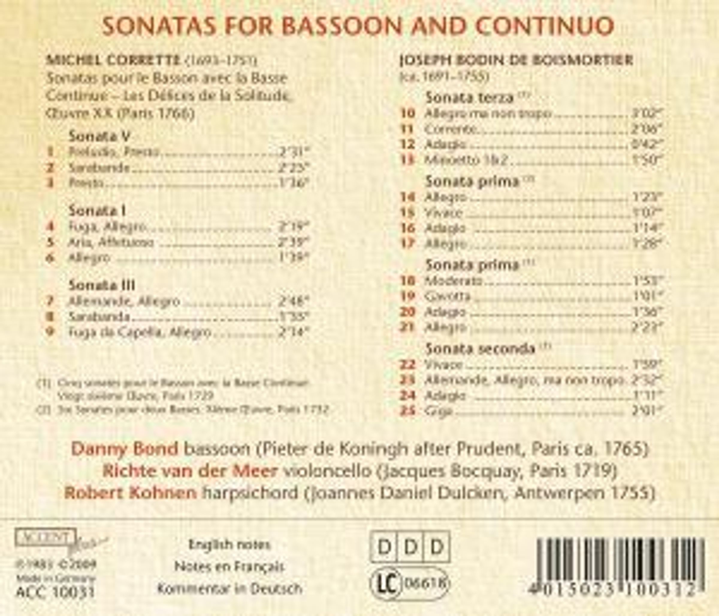 Michel Corrette: Sonaten f.Fagott & Bc.Nr.1,3,5 auf CD