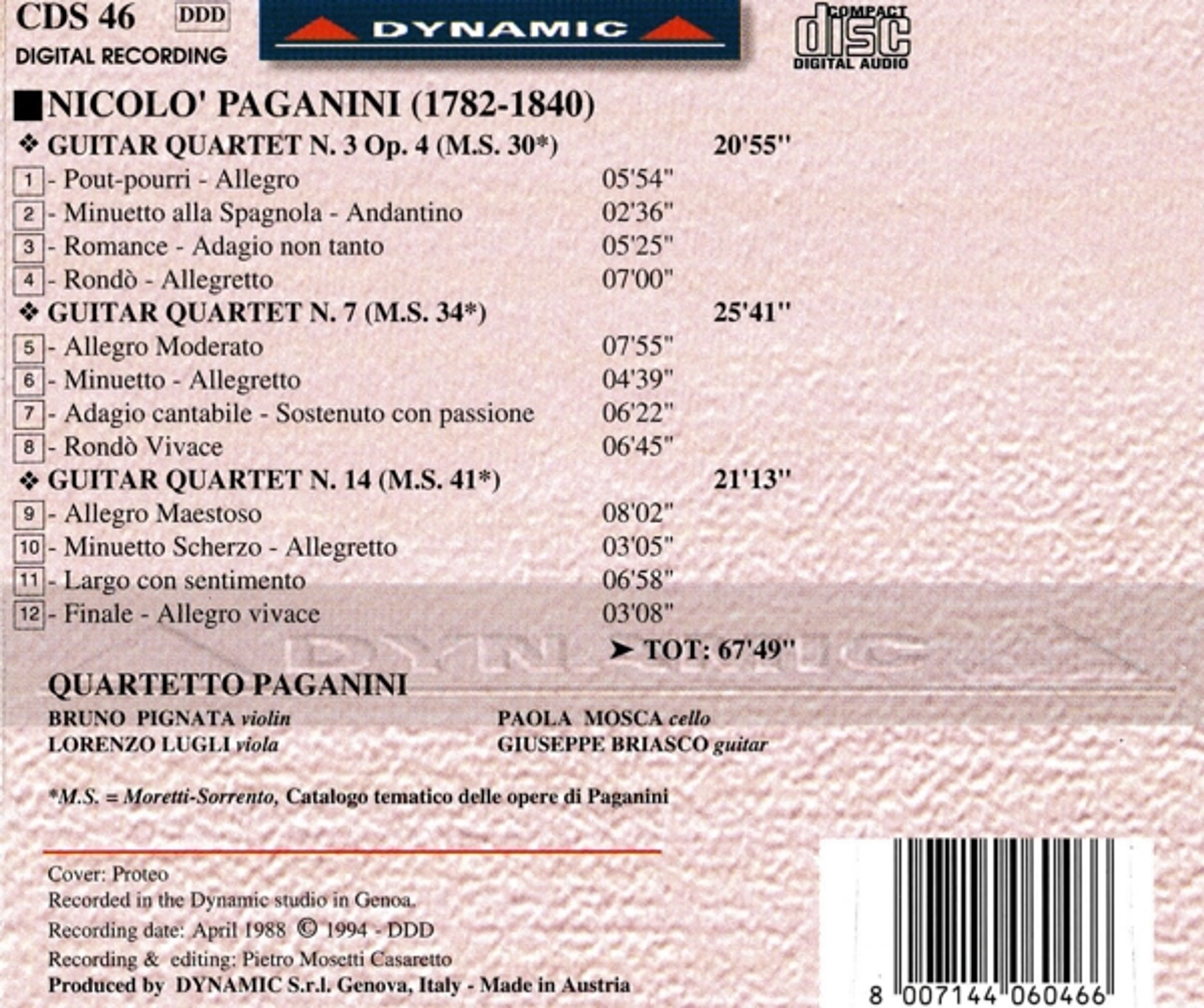 Niccolo Paganini: Gitarrenquartette Nr.3,7,14 auf CD