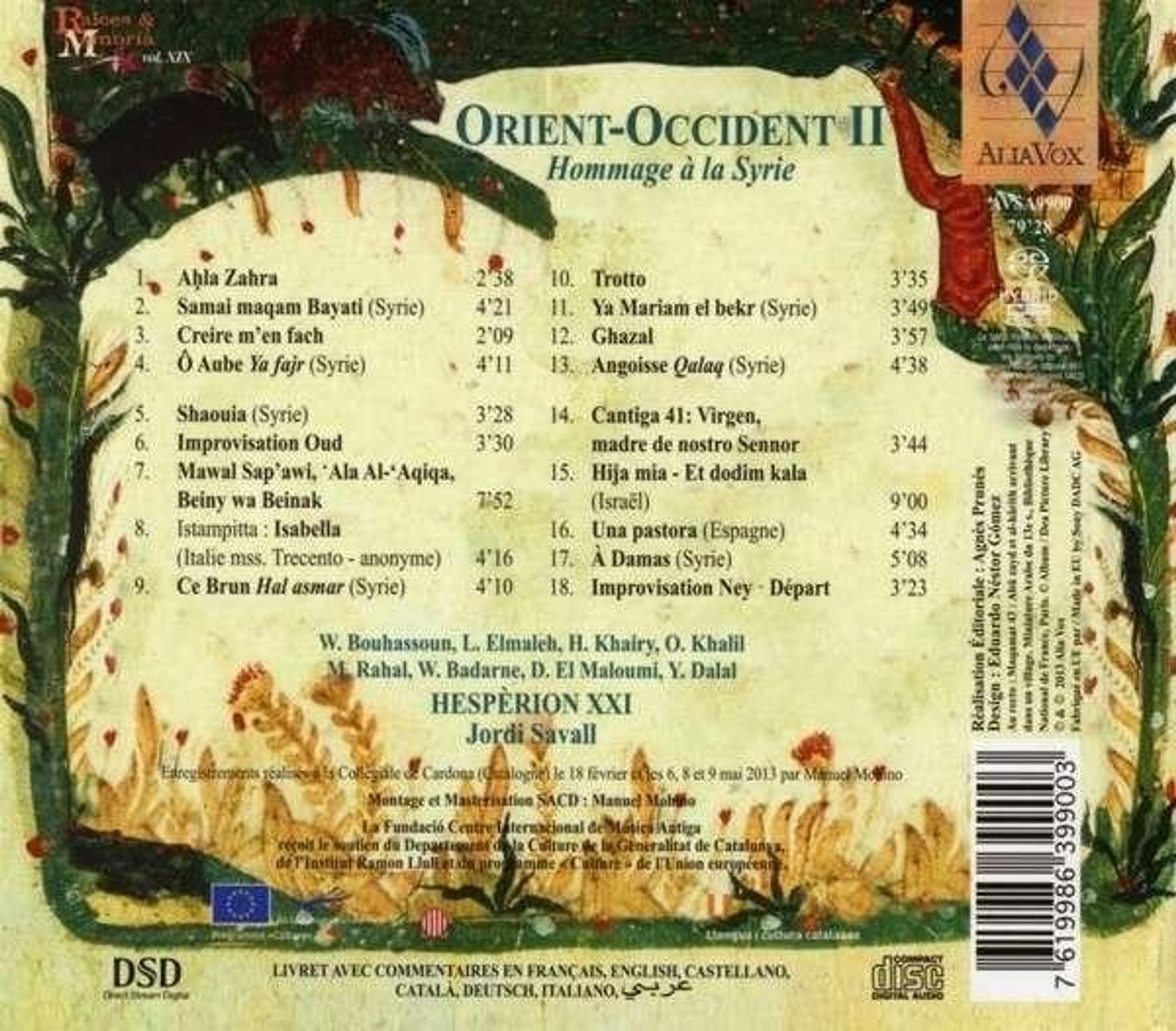 Das neue Werk legt den Schwerpunkt auf Syrien. Die Instrumental- und Gesangsstücke werden von Musikern aus Syrien, dem Libanon und Israel zusammen mit Hespèrion XXI gespielt und verdeutlichen einen künstlerischen und humanistischen Prozess, wie von Jordi Savall inzwischen nicht anders zu erwarten. Ein Prozess notwendiger denn je.