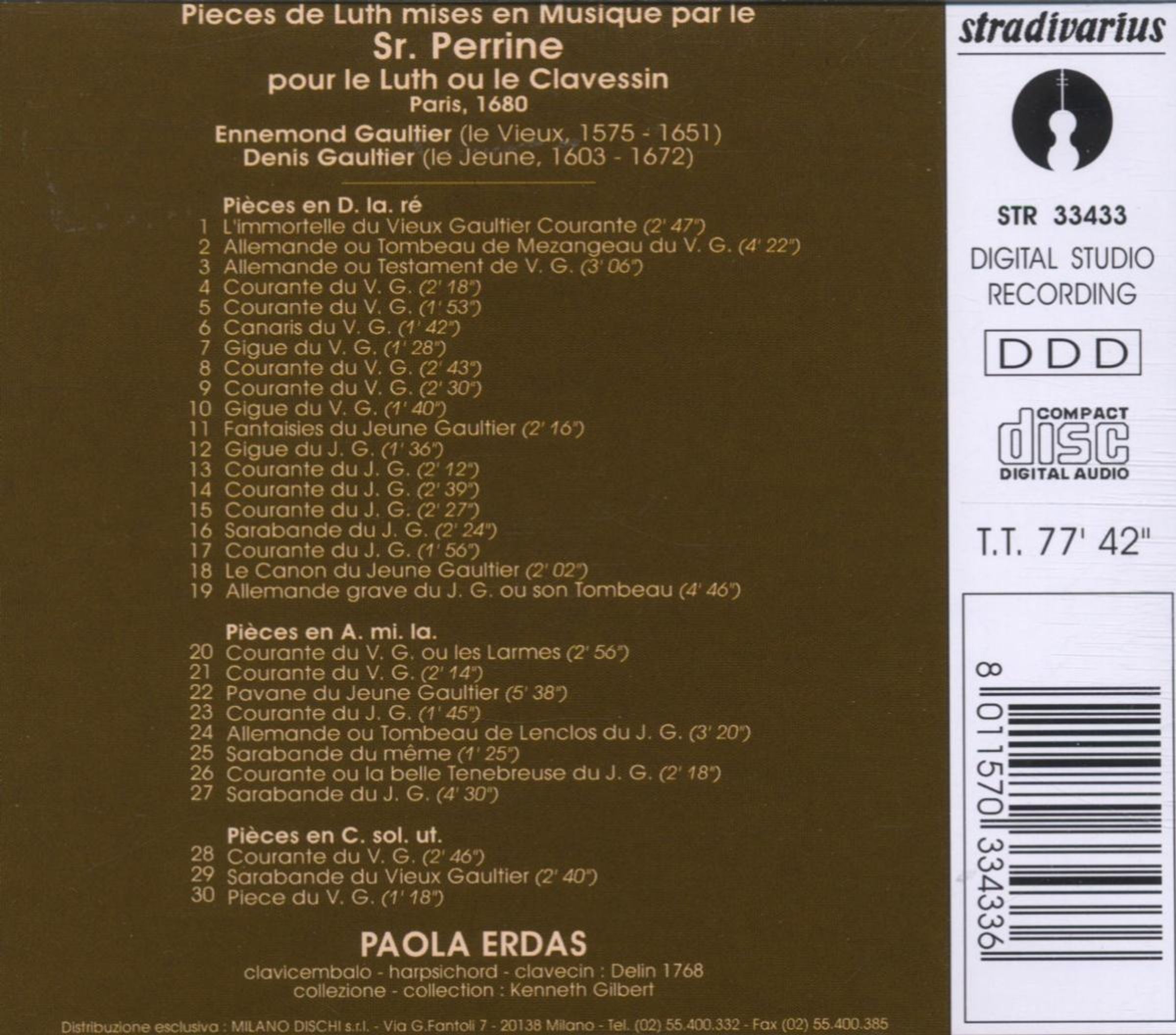 Perrine: Pieces pour le Luth ou le Clavessin auf CD