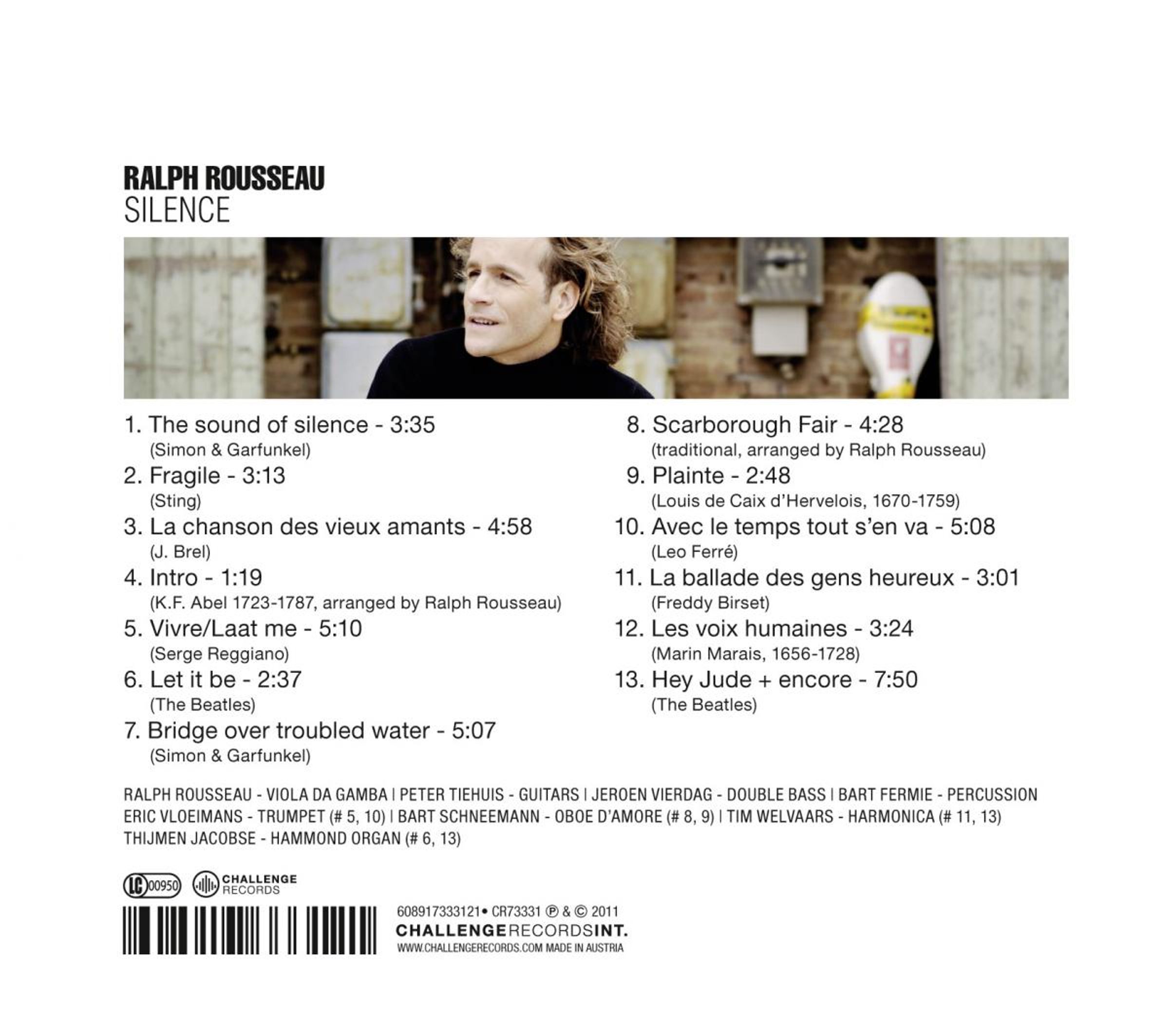 Ralph Rousseau. He knows his classics, he champions the music of 18th-century gamba virtuoso Forquerais. No-one performs the baroque repertoire of Marin Marais with greater enthusiasm and devotion, but a French chanson or one of Sting’s hits are treasures to him too. Rousseau: “You can’t put me in a pigeonhole. I don’t fit into the standard compartments. For me, music has to do with freedom. This new cd is not only about freedom, it is also about the pure joy of making music together with friends!