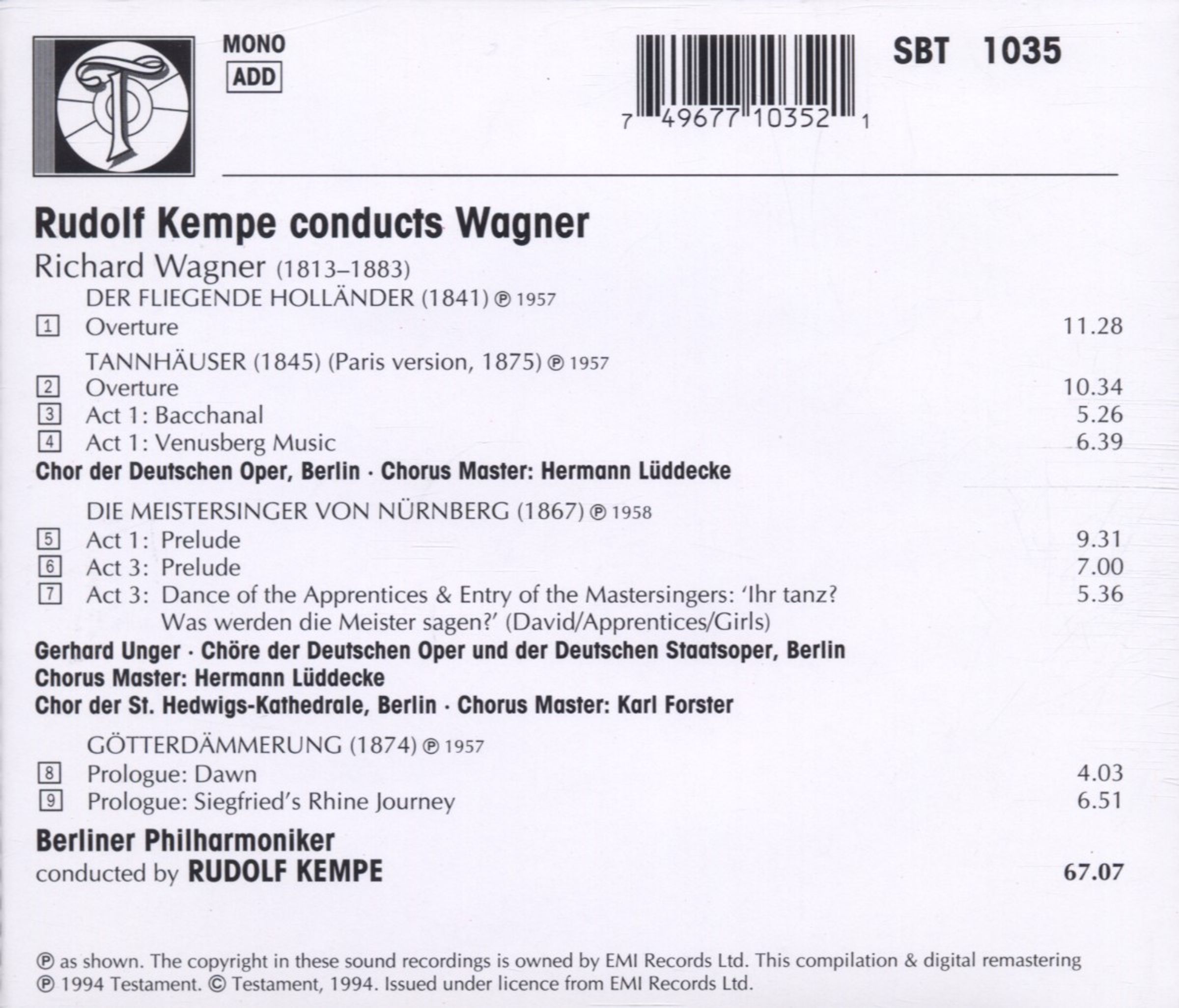 Rudolf Kempe dirigiert Wagner auf CD