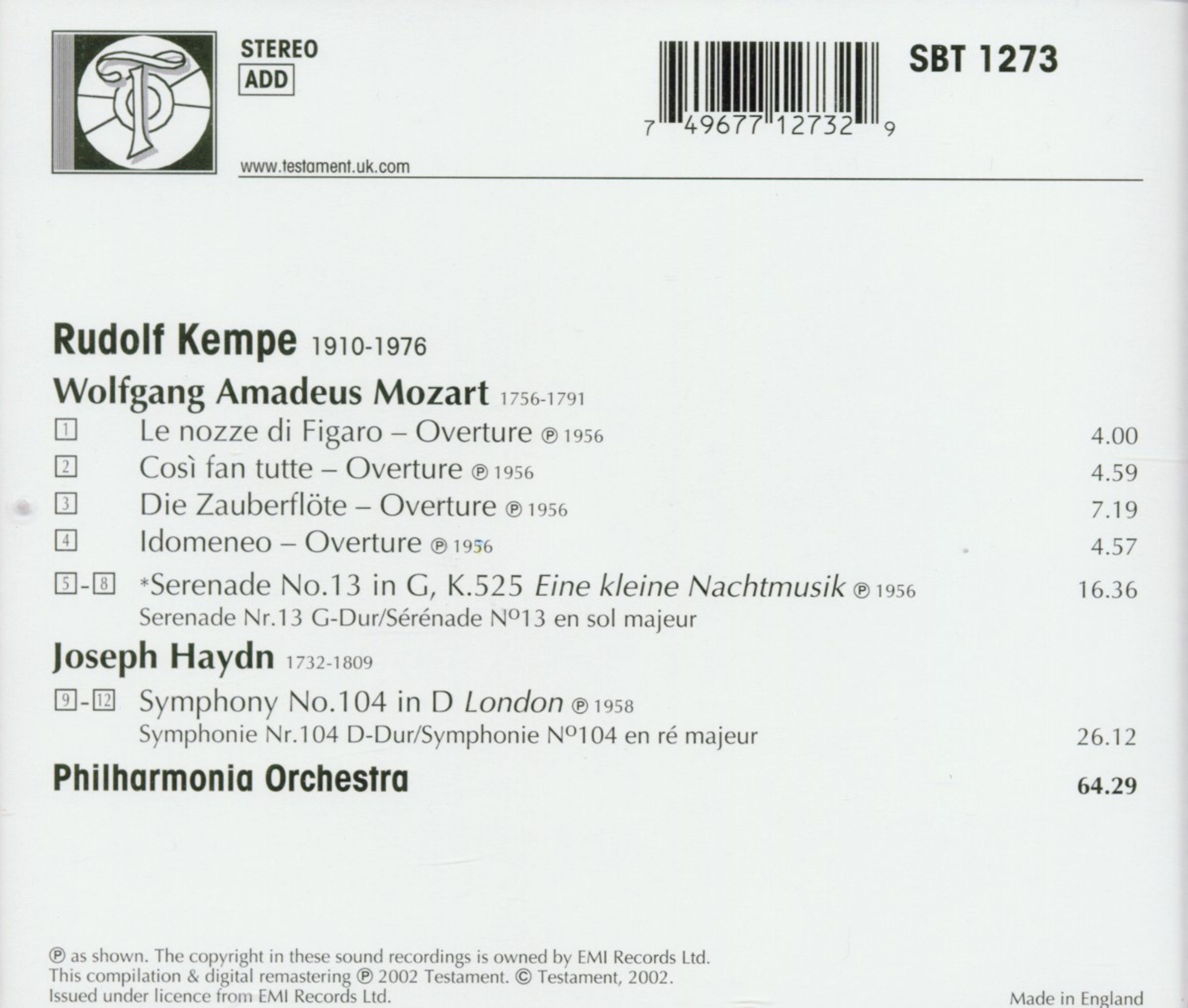 Rudolf Kempe dirigiert das Philharmonia Orchestra auf CD