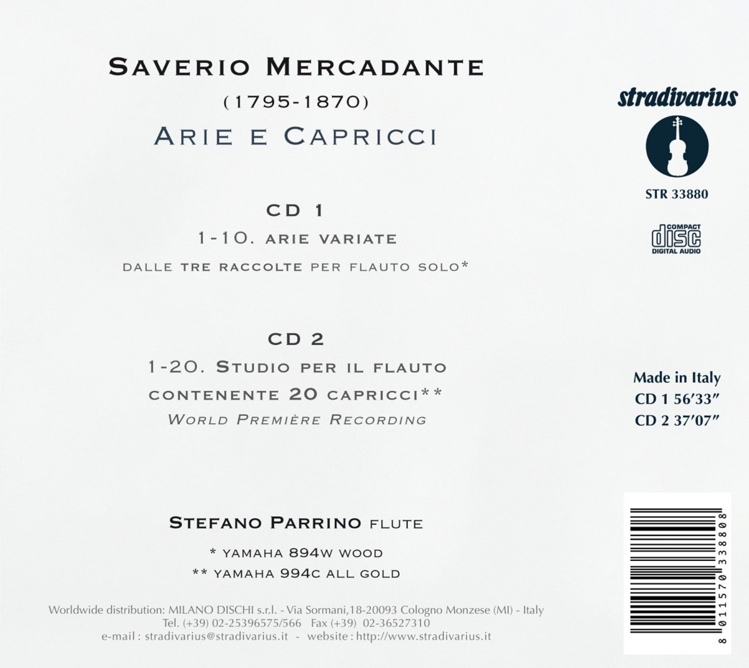 Saverio Mercadantes Flötenkonzerte gehören zu den dankbarsten Virtuosenkonzerten des 19. Jahrhunderts. Daneben hat der große italienische Opernkomponist das Instrument aber noch mit weiterer reizvoller Literatur für Flöte solo bedacht. Stefano Parrino stellt hier Mercadantes Variationen über bekannte Opernmelodien sowie die 20 Capricci vor. Letztere nehmen natürlich Bezug auf die Capricci Paganinis.