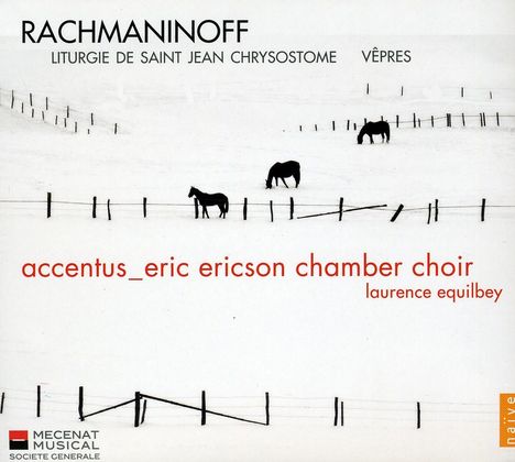 Sergej Rachmaninows "Liturgie des Hl. Johannes Chrysostomos", op. 31 (Uraufführung im März 1910), und die "Vespern", op. 37 (Uraufführung 1915), stellen einen monumentalen Höhepunkt der Rückbesinnung auf die Wurzeln der frühen russischen Musik dar, die ihren Anfang zu Beginn des 19. Jahrhunderts nahm. Rachmaninow wusste die alten slawischen Kirchentonarten sehr klug einzusetzen und schaffte es, die Einflüsse der zwei in Russland vorherrschenden Kompositionsschulen zu vereinen (die St. Petersburger mit Rimsky-Korsakoff und Mussorgsky sowie die Moskauer Schule mit Kastalsky, Chesnokow und Gretschaninow). Auf dieser CD hat Laurence Equilbey mit Accentus, unterstützt vom Kammerchor ihres Lehrmeisters Eric Ericson, diese überweltlich schön anmutenden geistlichen Vokalwerke neu aufgenommen. Die 65 Stimmen beider Chöre schaffen eine eindringliche und zugleich luftige Interpretation, bei der der Spagat zwischen sinfonischem Klang und Textverständlichkeit gelingt.