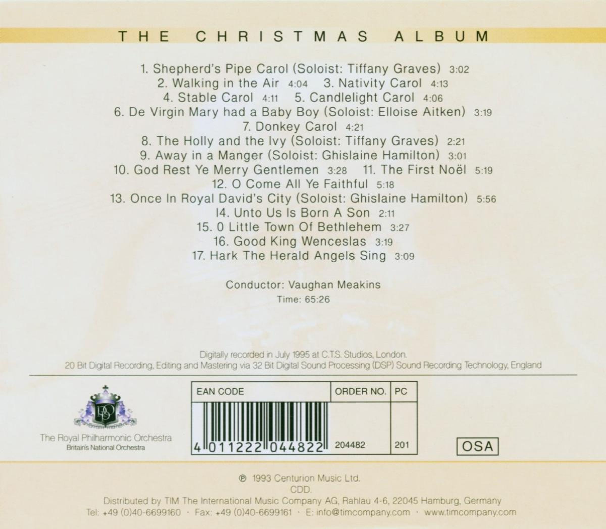 - Graves, Aitkin, Chamber Choir of Arts Educational Choir, Royal Philharmonic Orchestra, Meakins