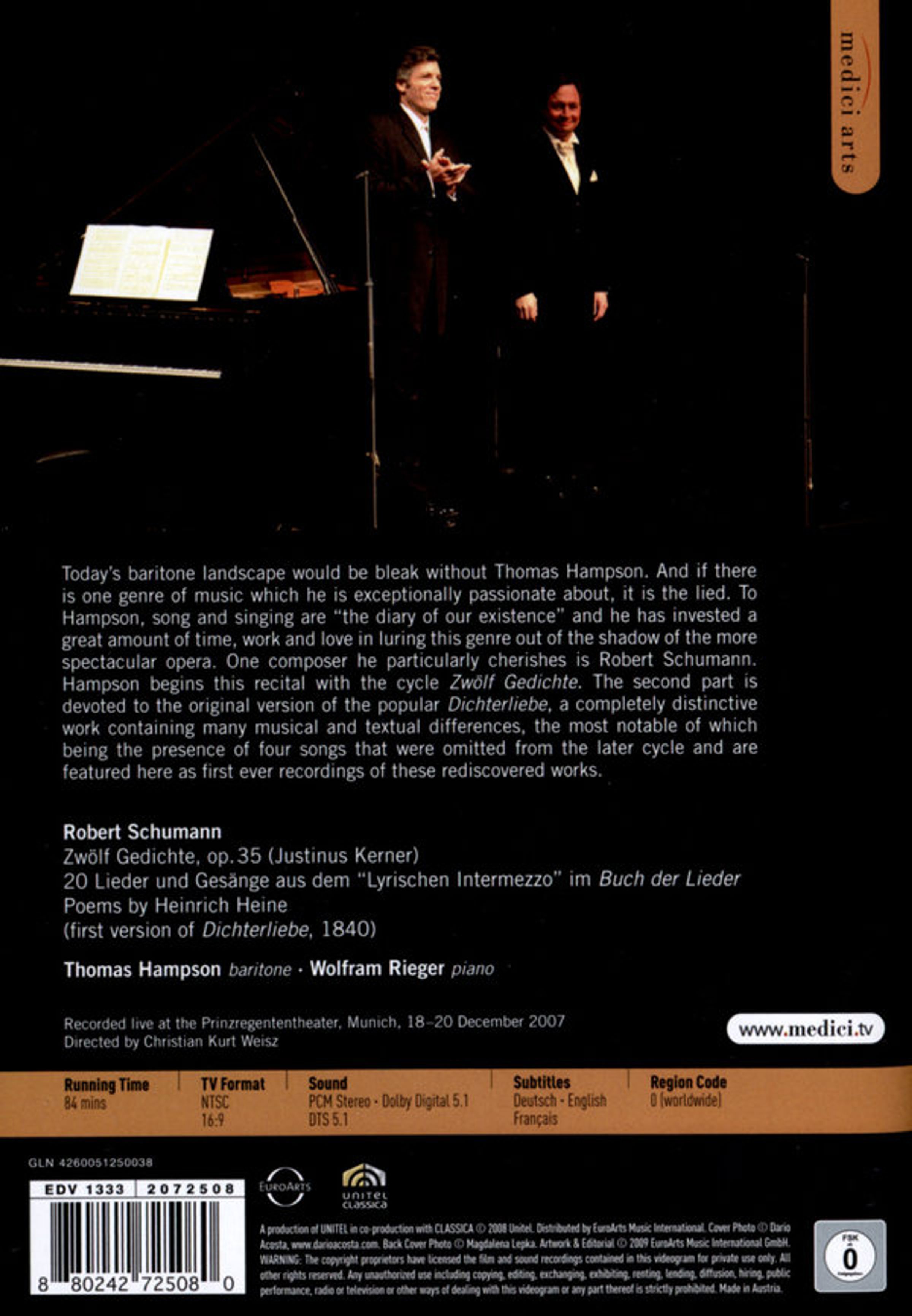 FonoForum 08/10: "In der Originalversion ist die "Dichterliebe" vier Lieder länger, Hampson singt sie konzentriert, gereift, dabei sensibel den jeweiligen Stimmungen hinterherhorchend, auch mit wachem Sinn für Heines romantische Ironie. Seine genuin lyrische Stimme ist dunkler geworden, auch ein wenig härter, aber immer noch flexibel bis in die kleinsten Nuancen. Gereift präsentiert er sich als nach wie vor entspannt ausdrucksmächtiger Liedgestalter. Neben der Kohorte britischer Liedbegleiter kann sich Hampsons bevorzugter Pianopartner Wolfram Rieger mit feinem, reaktionsschnellem Ton behaupten, der durchaus eigene Akzente setzt."
