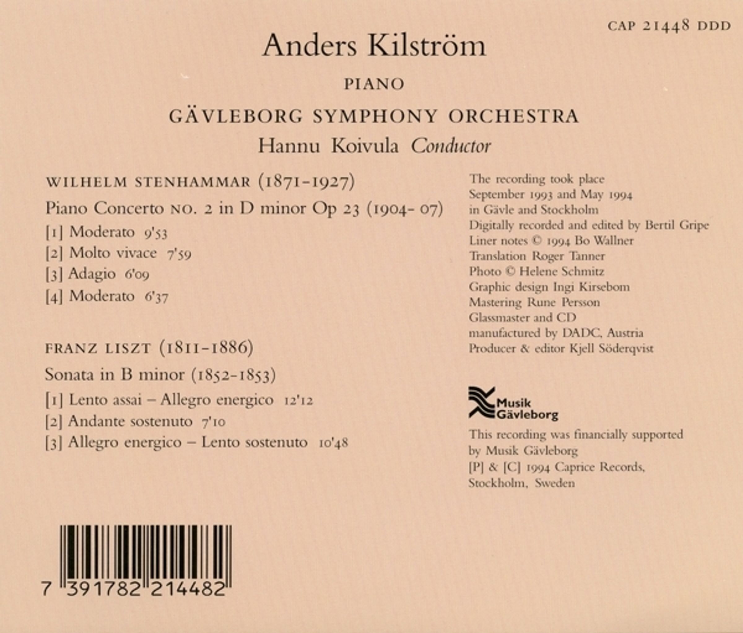 Für diese Aufnahme hat Anders Kilström Wilhelm Stenhammars Zweites Klavierkonzert mit dem Gävleborg Symphony Orchestra unter der Leitung von Hannu Koivola sowie Liszts große h-Moll-Sonate ausgewählt – zwei Werke, die auf den ersten Blick völlig gegensätzlich erscheinen, aber gewisse Berührungspunkte aufweisen, beispielsweise in Bezug auf Themen und Motive.