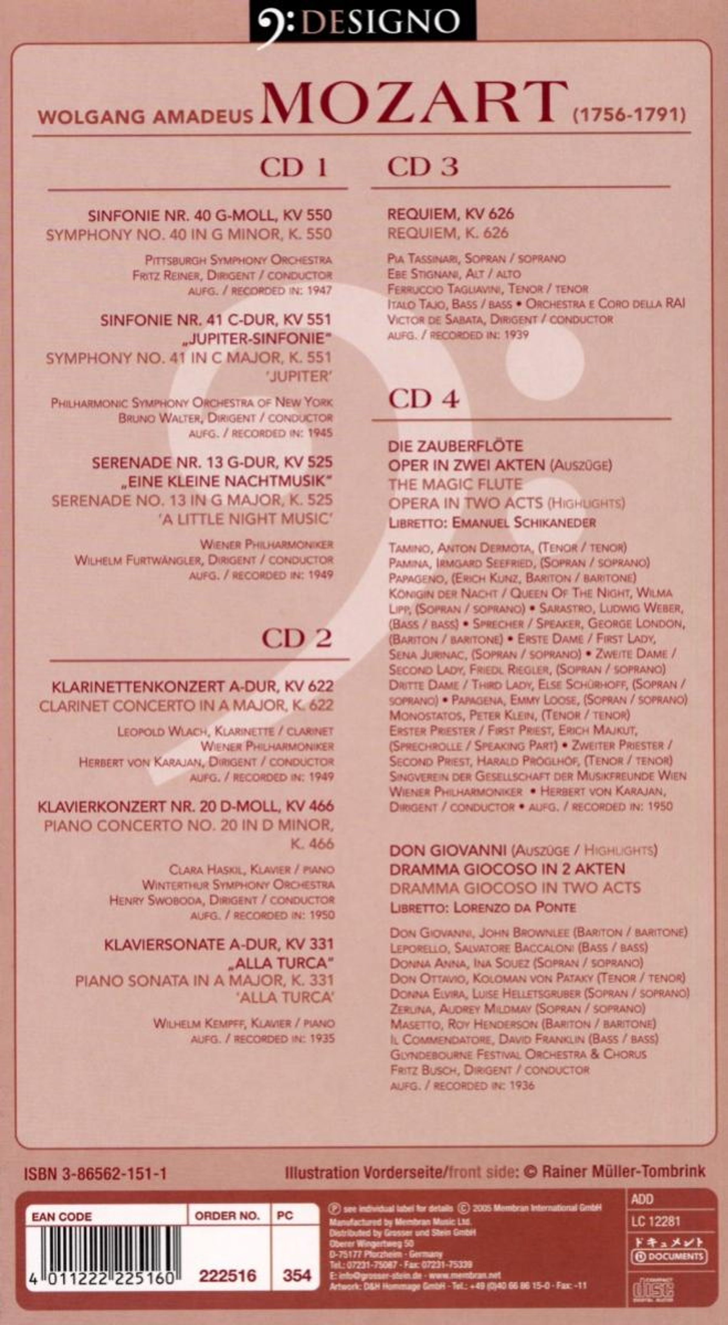 +Serenade Nr. 13; Klarinettenkonzert KV 622; Klavierkonzert Nr. 20; Klaviersonate KV 331 "Alla Turca";Requiem KV 626; Die Zauberflöte (Ausz.); Don Giovanni (Ausz.)