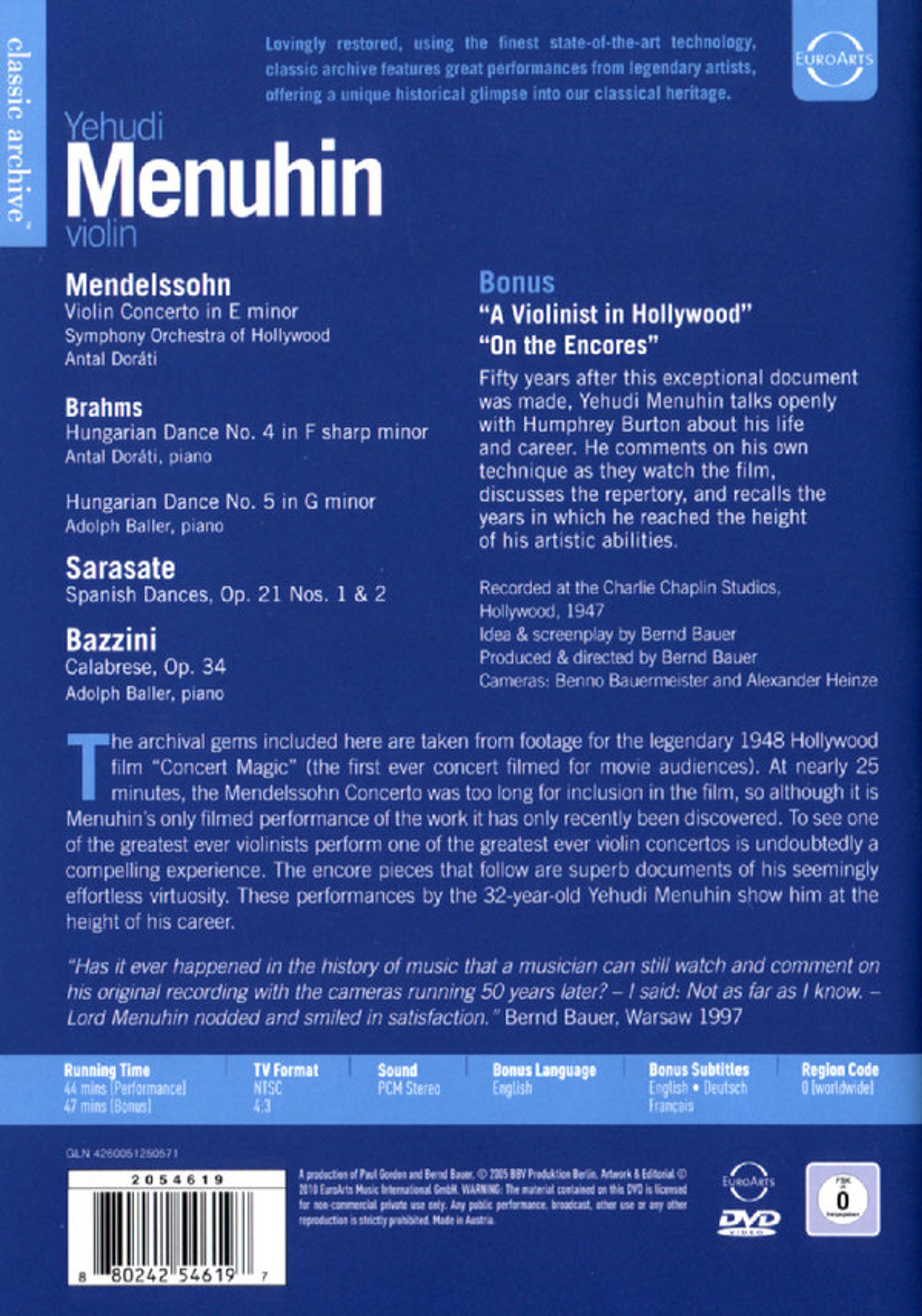 - Yehudi Menuhin, Antal Dorati, Adolph Baller, Hollywood Symphony Orchestra, Antal Dorati