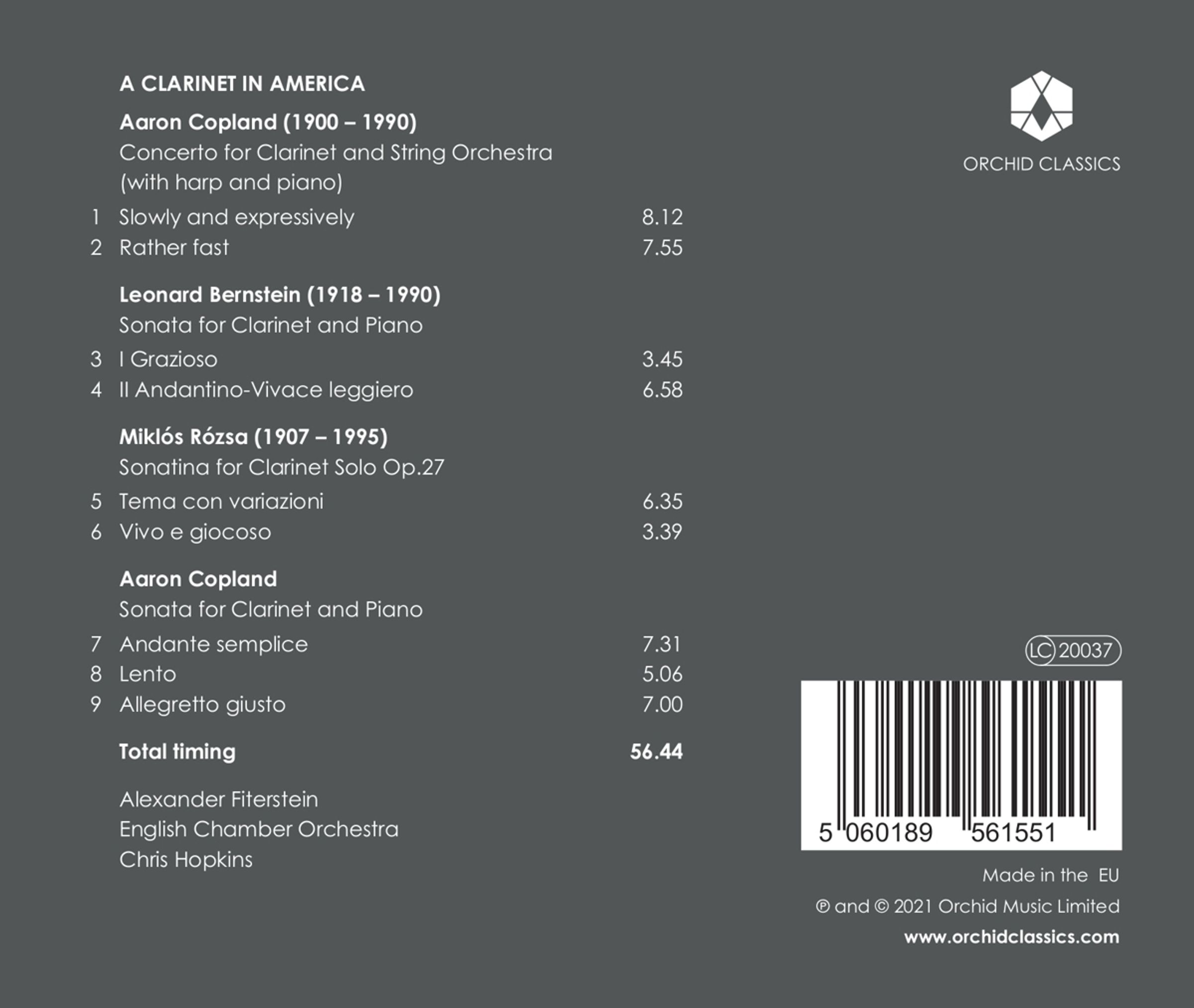Die Klarinette wird von amerikanischen Komponisten seit langem wegen ihrer Unbeschwertheit und jazzigen Flexibilität geschätzt (man denke an den Slide, der Gershwins Rhapsody in Blue eröffnet), Eigenschaften, die auf diesem Album in Hülle und Fülle zu hören sind. Wir hören Leonard Bernsteins kubanisch beeinflusste Sonate und die Sonatine des in Budapest geborenen Miklos Rozsa, der sich als Hollywood-Filmkomponist einen Namen gemacht hat.