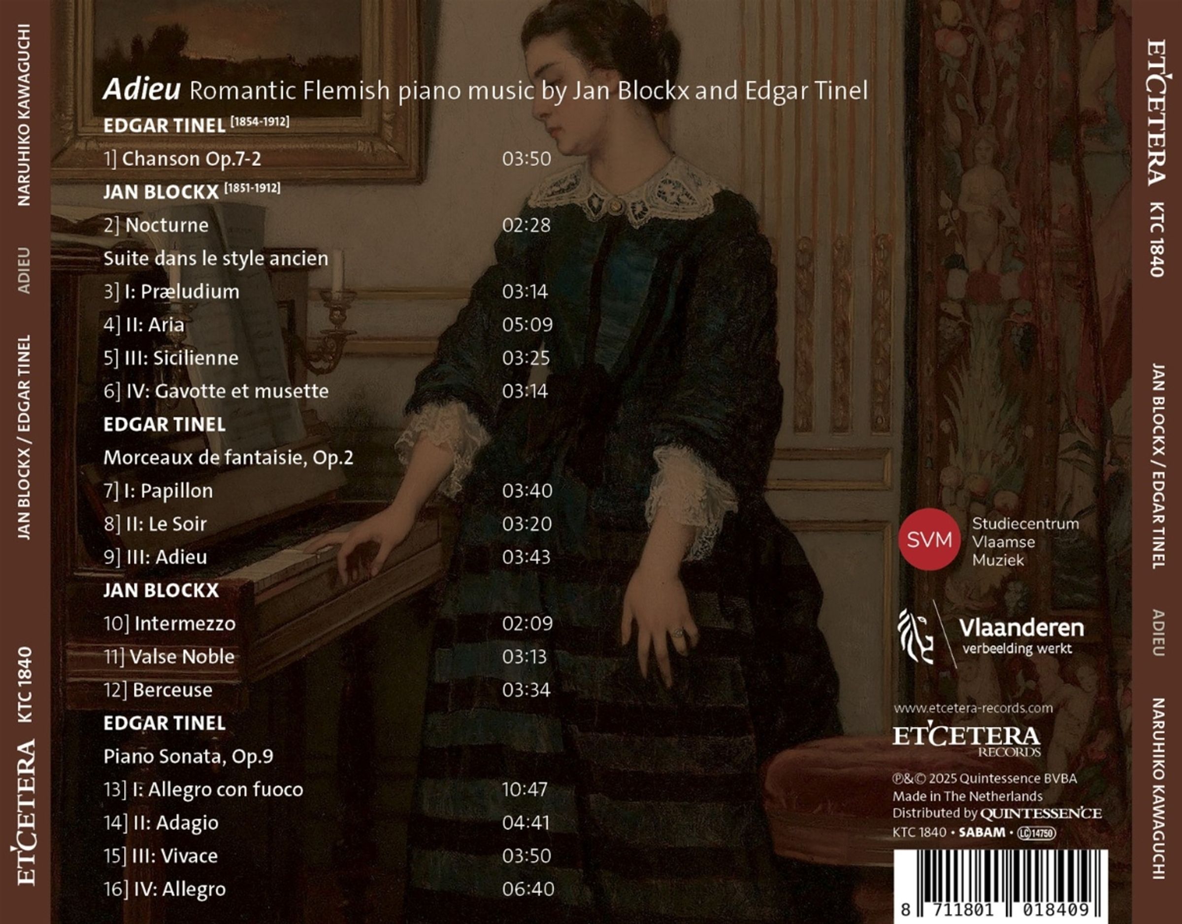 Die Zeitgenossen Jan Blockx und Edgar Tinel waren nicht nur in ihrer Heimat beliebt, sondern feierten auch große internationale Erfolge: Tinel mit seinem hagiografischen Oratorium Franciscus (1888) und Blockx mit seiner veristischen Oper Herbergprinses (1896). Groß angelegte Vokalwerke prägen ihr Gesamtwerk, während Klaviermusik nur den kleineren Teil ausmacht. Beide waren auch engagierte Lehrer. Tinel war ab 1881 der zweite Direktor der École de Musique Religieuse in Mechelen und leitete von 1908 bis 1912 das Conservatoire Royal in Brüssel. Blockx leitete von 1901 bis 1912 das Königlich-Flämische Konservatorium in Antwerpen. Sie standen in regelmäßigem Kontakt